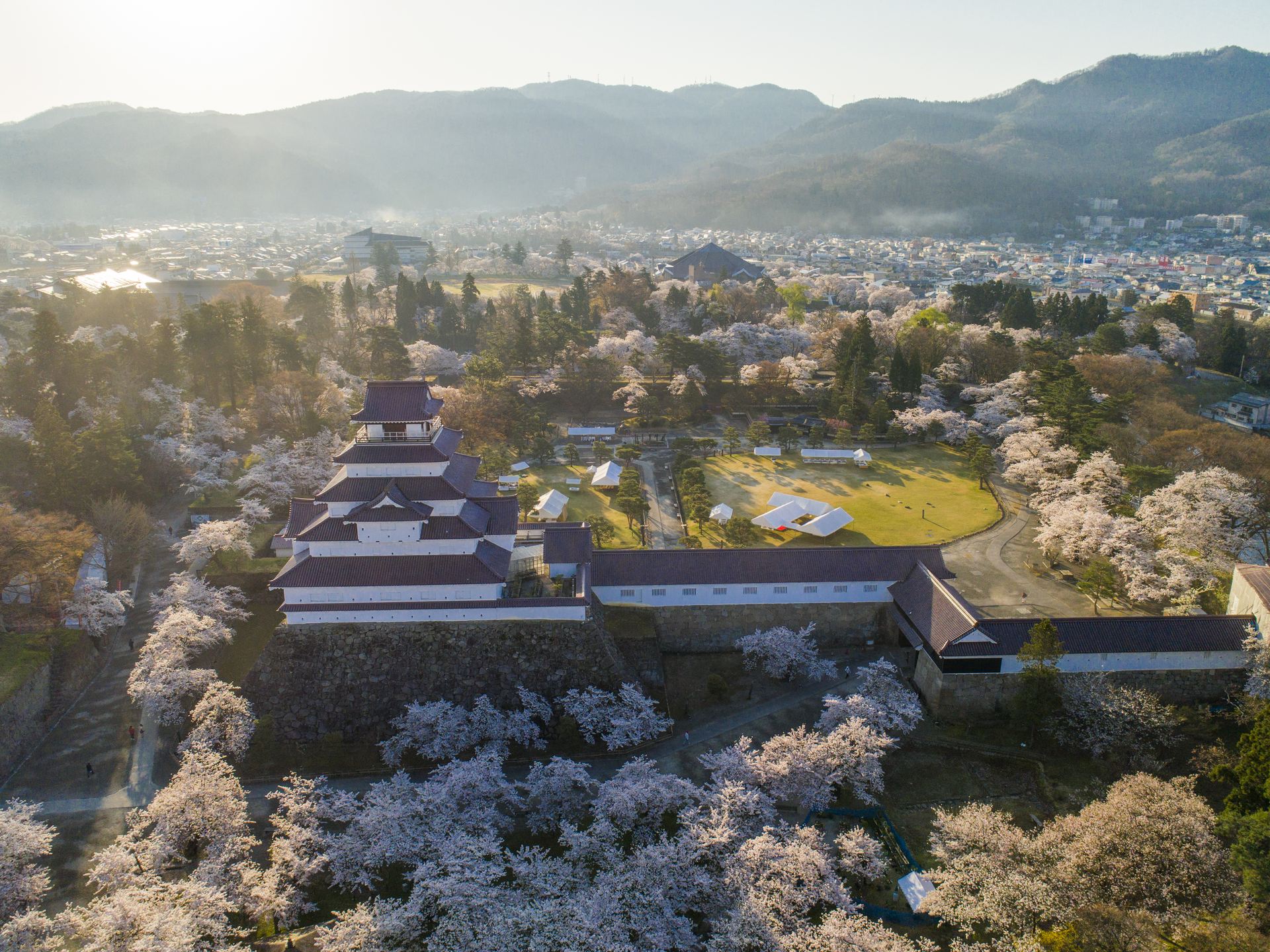 아즈치모모야마 시대에 도요토미 히데요시의 명으로 가모 우지사토가 구로카와성에 입성하여 대대적인 개축을 진행, 5층 5계 지하 2층의 덴슈(천수)를 완공하고 성 이름을 쓰루가성으로 바꾸었다. 우에스기 가게카쓰가 잠시 성주였다가 세키가하라 전투 이후 도쿠가와 이에야스에 의해 요네자와로 이봉되었다.[7]