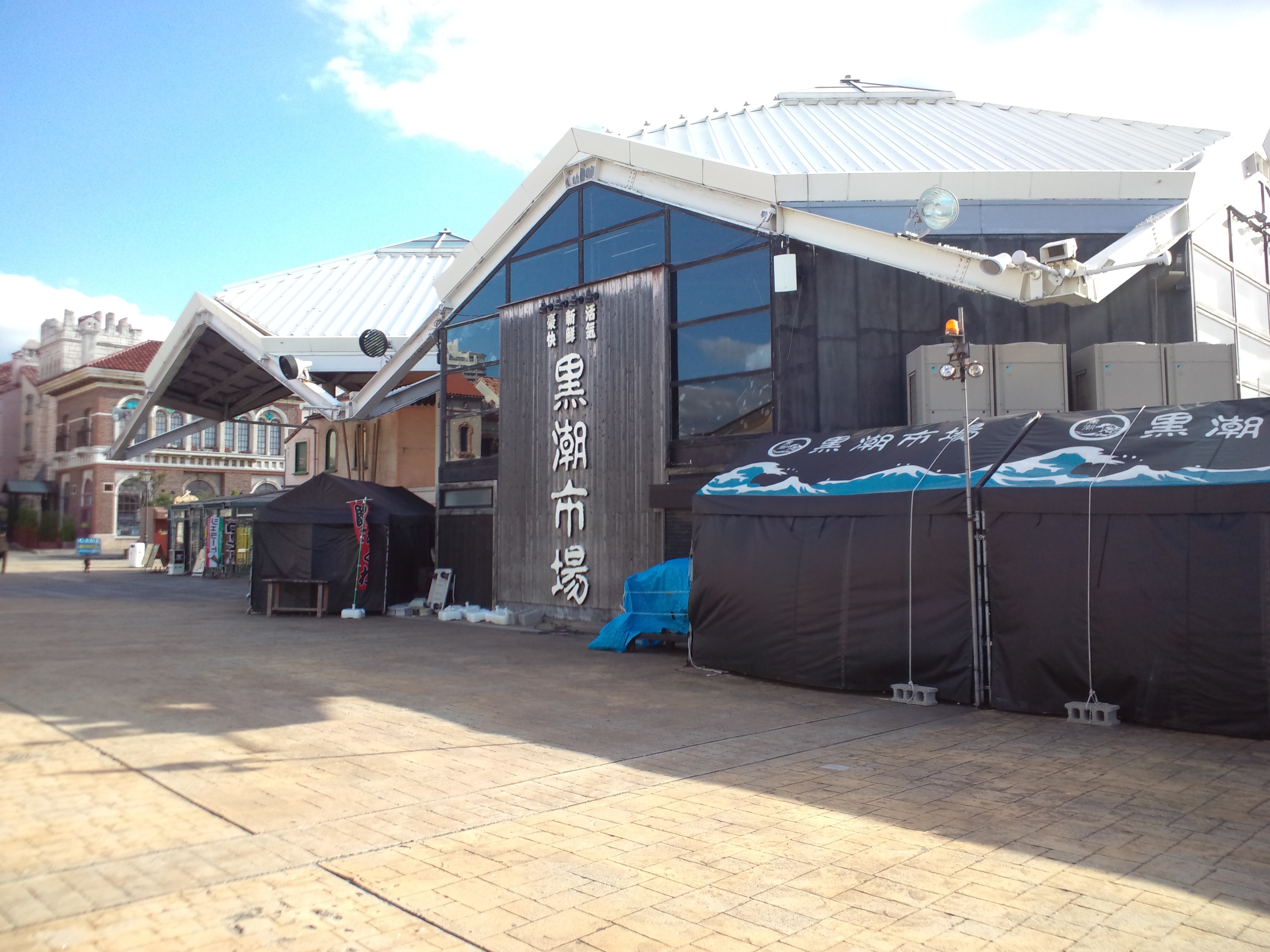 구로시오 시장은 "어부의 부두" 스타일의 수산 시장으로, 갓 잡은 생선과 조리된 생선 요리를 판매한다. 실내와 실외에는 작은 화덕이 마련되어 있어, 방문객들은 현장에서 구매한 식재료를 직접 요리할 수 있다. 음식 외에 주요 볼거리는 참치 해체 쇼이다. 건물은 4층으로 구성되어 있으며, 바닥 면적은 6767.08m2이다.[26]