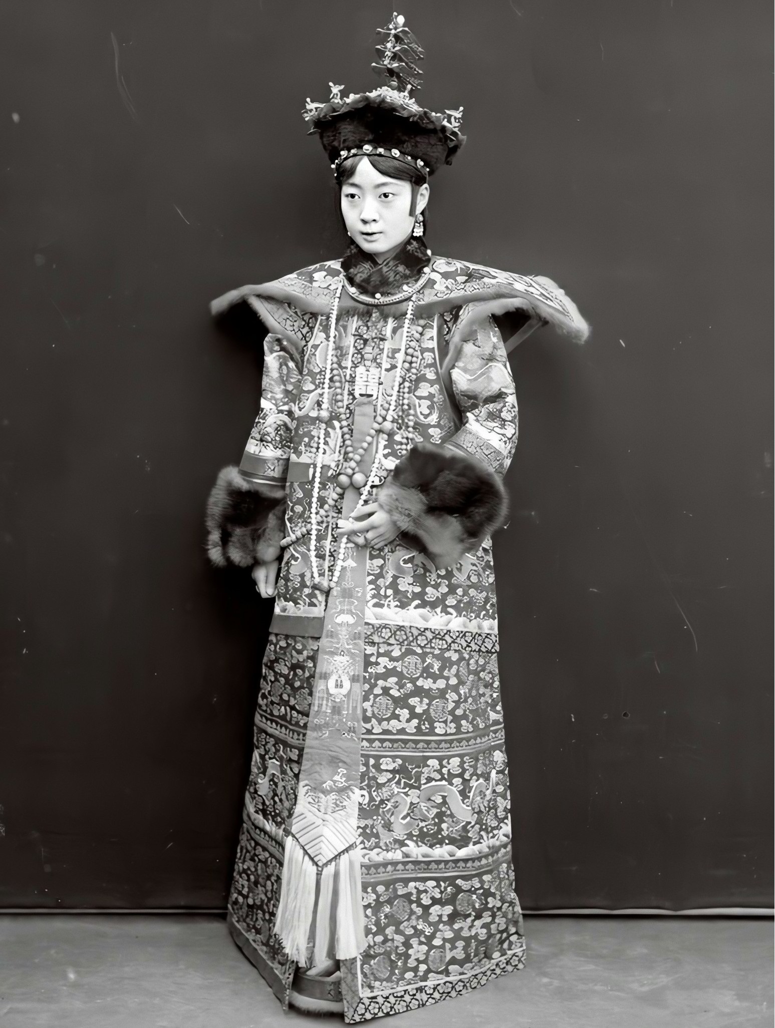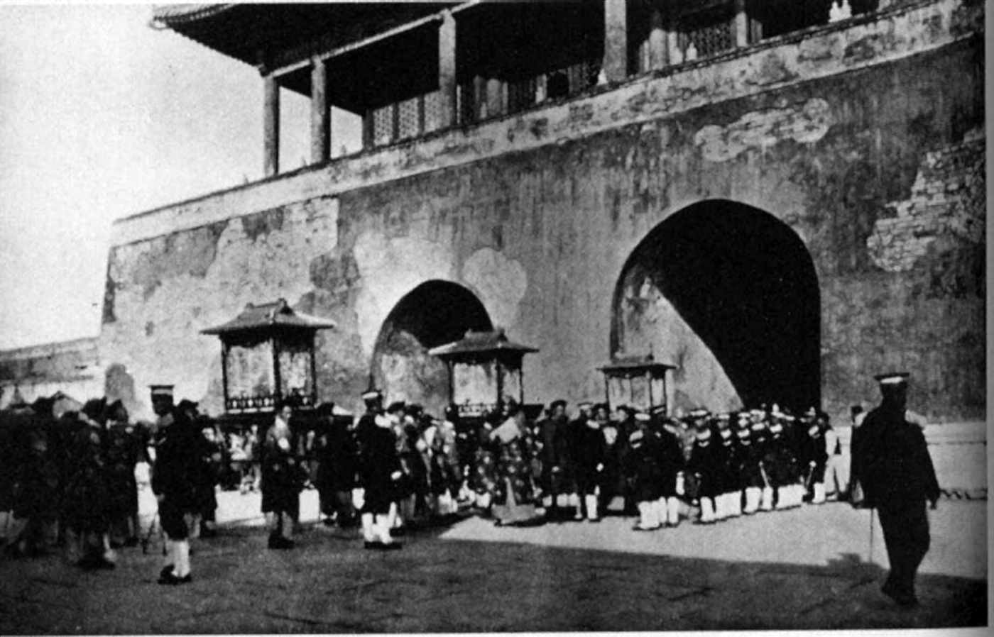 결혼식에 참석했던 미국 여행 작가 리처드 할리버튼은 다음과 같이 묘사했다. "새벽 4시에 이 화려한 볼거리가 북경의 달빛 아래 거리를 지나 감옥 궁전으로 향했다. 도시 전체가 깨어 있었고 사람들은 행진 대열에 몰려들었다. 깃발 숲이 불타고 펄럭였다... 검은 실크에 금 용, 금 실크에 파란 용, 그리고 흔들리는 등불, 신부의 예복을 담은 도금된 키오스크, 화려한 수행원들로 둘러싸인 말을 탄 왕자들. 음악은 넘쳐났다. 마지막으로 신부의 가마가 황색 비단으로 덮여 있었고, 큰 금 용으로 지붕을 덮었으며, 16명의 귀족이 운반했다."[23]