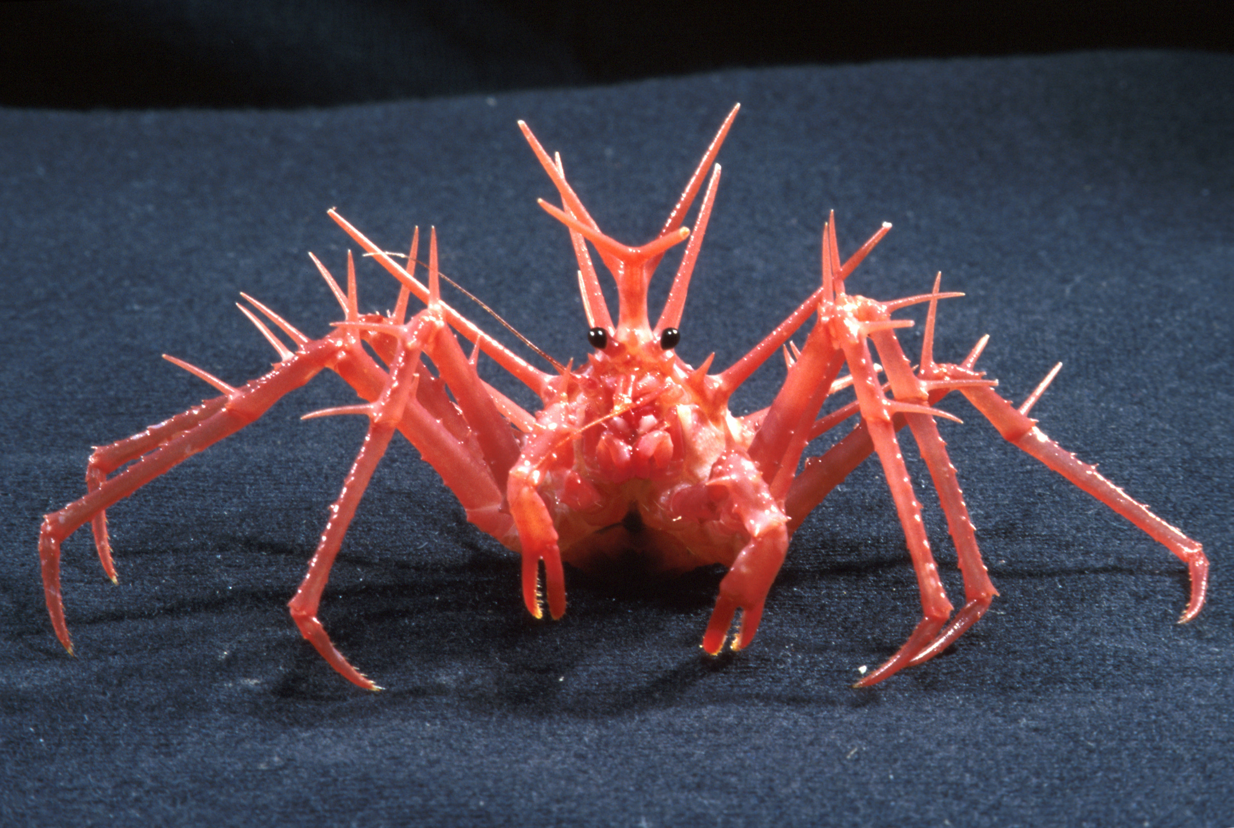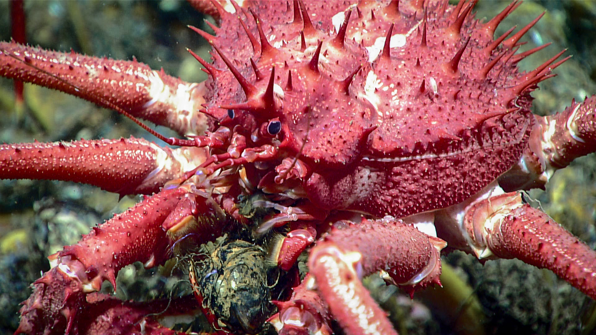 청색왕게는 북쪽 차가운 해역에 서식하는 킹크랩의 일종으로, 갑폭 15cm까지 자라고 푸른빛 보라색 갑각을 가지며 식용으로 어획되지만 개체 수 감소로 어업이 제한적으로 이루어지고 있다. - 식용 갑각류 - 바닷가재