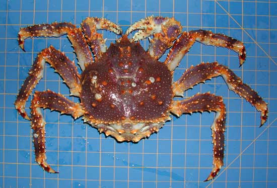 ![]() | 털게 (H. Milne-Edwards & Lucas, 1841) | 갈색 왕게, 하나사키 왕게, 가시 왕게 | 북서 태평양, 오호츠크해, 베링해 |