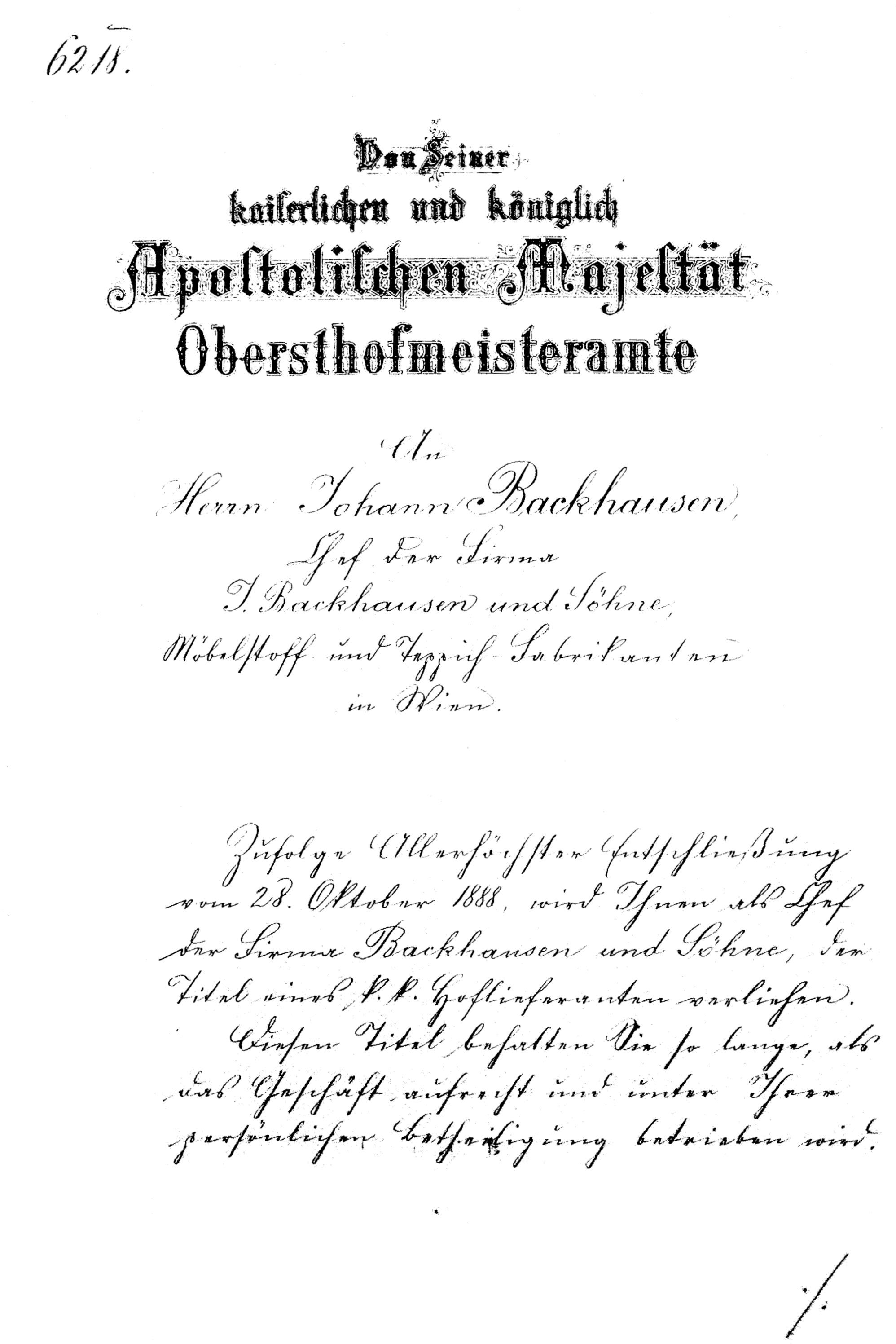 1856년, 러시아 제국에서는 "폐하 조달업체"라는 명칭이 최고의 권한으로 주어졌으며, 해당 업체는 방패에 국가 문장을 새길 수 있었다. 1895년에는 알렉산드라 표도로브나 황후의 요청으로 "황후 폐하 조달업체"라는 두 번째 권한이 추가되었다. 이 두 권한은 니콜라이 2세가 퇴위한 1917년까지 존속했다.[10]