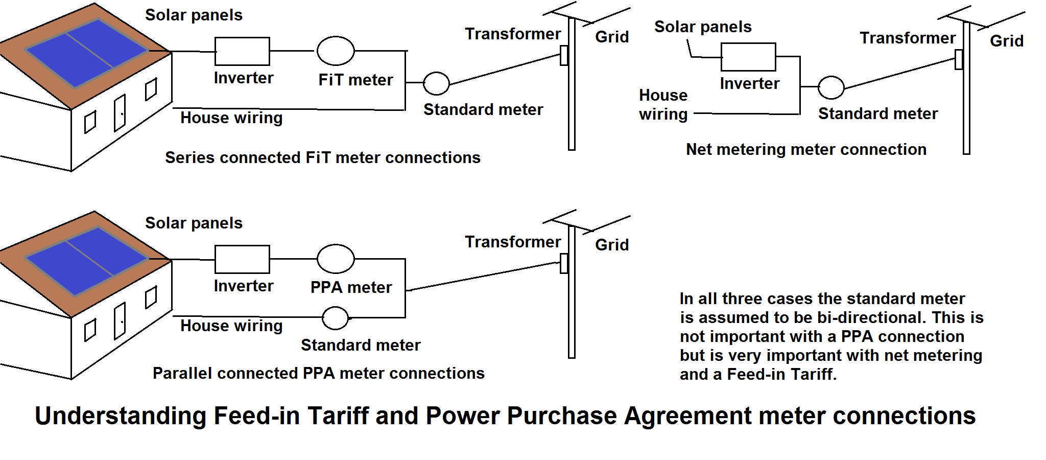 # '''발전차액지원제도'''(FIT): 일반적으로 소매 가격보다 높은 가격으로 보상하며, 제도 도입이 확산됨에 따라 점차 소매 가격 수준으로 낮아지는 경향이 있다. 발전차액지원제도는 두 개의 계량기를 필요로 한다.