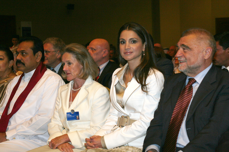 세서미 워크숍(Sesame Workshop)과 모자이크 재단(Mosaic Foundation)의 파트너십을 기념하는 만찬에서 라니아 왕비, 2006년 5월 워싱턴 D.C.