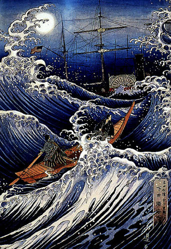 1853년 매슈 페리가 우라가에 당도하자 스승 사쿠마 쇼잔과 함께 흑선을 관찰하고 서양 문명에 감명을 받았다. 이후 해외 유학을 결심하고 가네코 시게노스케와 함께 나가사키에 정박 중이던 예핌 푸차친의 러시아 군함에 승선하려 했으나 실패했다.