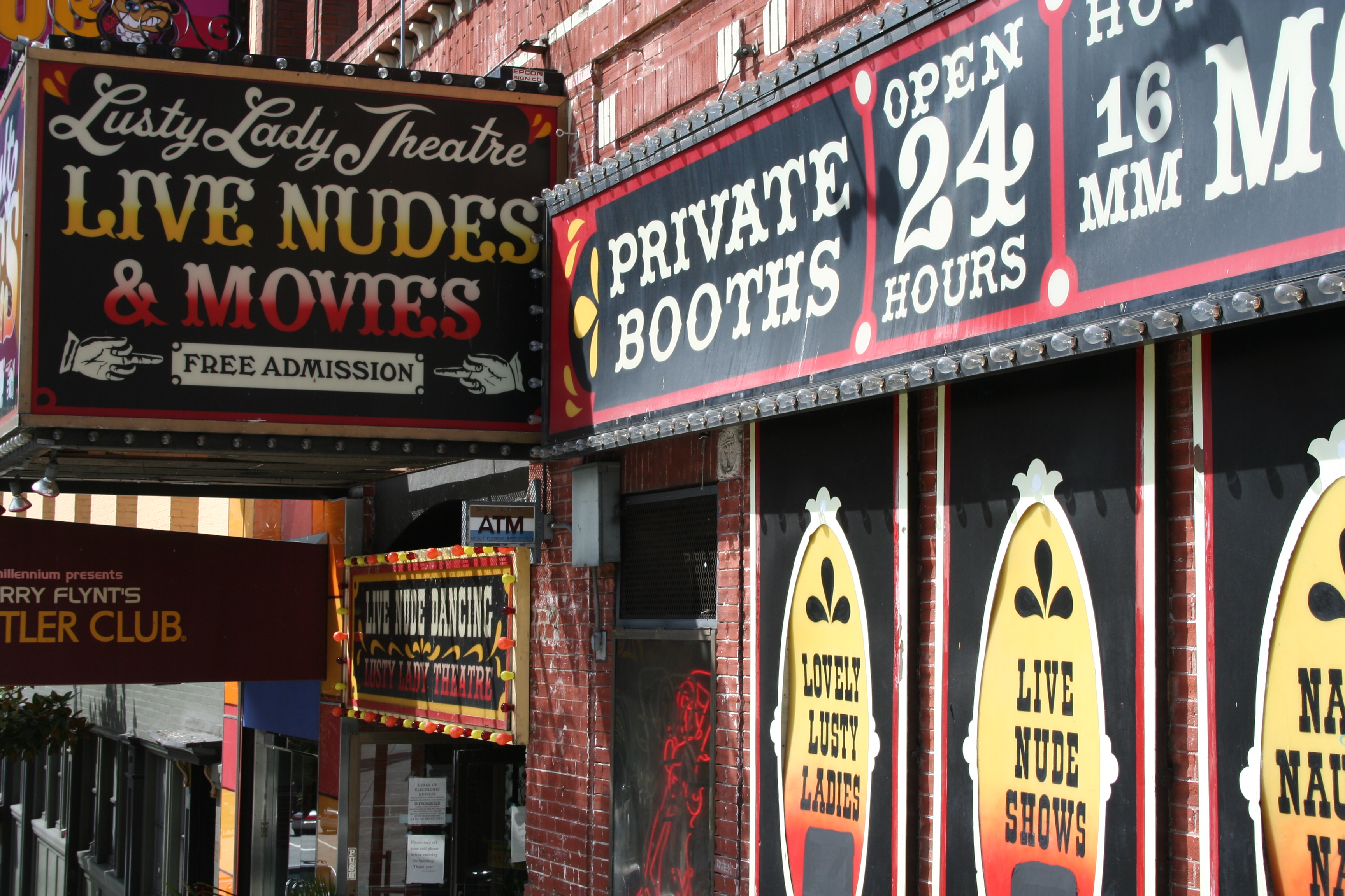 특히 샌프란시스코는 러스티 레이디와 같은 유명 엿보기 쇼 업소가 있었던 도시로, 관련 산업 및 노동 환경과 관련하여 주목할 만한 사례들이 발생했던 곳이다. 자세한 내용은 하위 문서를 참고할 수 있다.