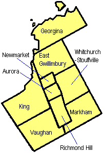 자치구 | 오로라 이스트 귈림버리 조지나 킹 마크햄 뉴마켓 리치먼드 힐 본 화이트처치-스토우빌 |