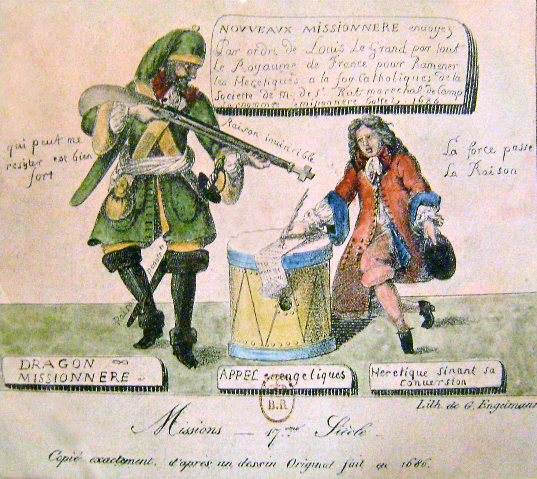 프랑스에서 용기병의 창설은 속도가 필요할 때 말로 보병을 수송하는 관행에서 발전했다. 1552년, 파르마 공작 알레산드로 파르네세는 기습을 위해 여러 보병 중대를 짐말에 태웠고, 나사우의 루이는 1572년 에노의 몬스 근처에서 작전을 수행하는 동안 500명의 보병을 이런 식으로 수송했다.[1] 1600년 브리사크 공작에 의해 최초의 용기병이 창설되었다고도 한다.[2]용기병 명칭의 기원은 불분명하다. 초창기 무기인 짧은 휠록에서 유래했을 텐데, 이 무기의 총구가 용의 머리로 장식되어 '드래곤'이라고 불렸다. 이 관행은 컬버린, 서펜틴, 팰컨, 팰코넷 등 모든 화약 무기가 고유한 이름을 가지고 있던 시대에서 비롯되었다.[3] 또한, 헐렁한 코트와 불타는 도화선을 가진 질주하는 보병이 드래곤과 닮았기 때문이라는 주장도 있다.[4]