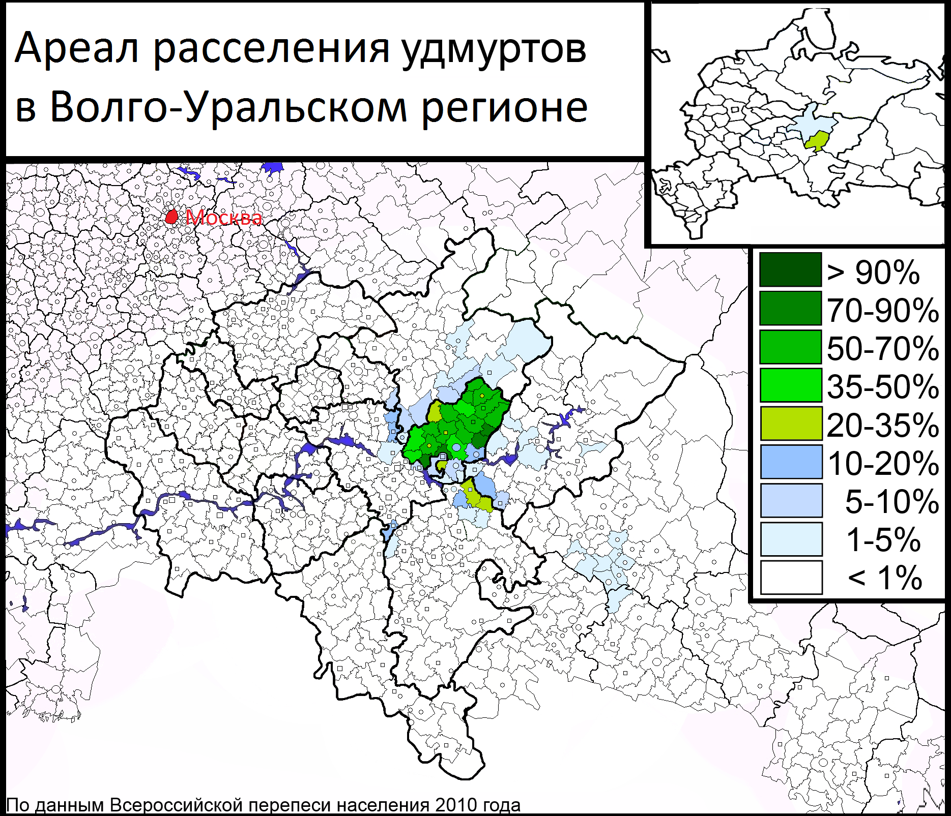 핀우고르계 민족으로, 코미인, 마리인, 모르도바인 등과 가깝다. 고유 언어는 우드무르트어이지만, 현재는 러시아어, 타타르어 사용자가 많다.