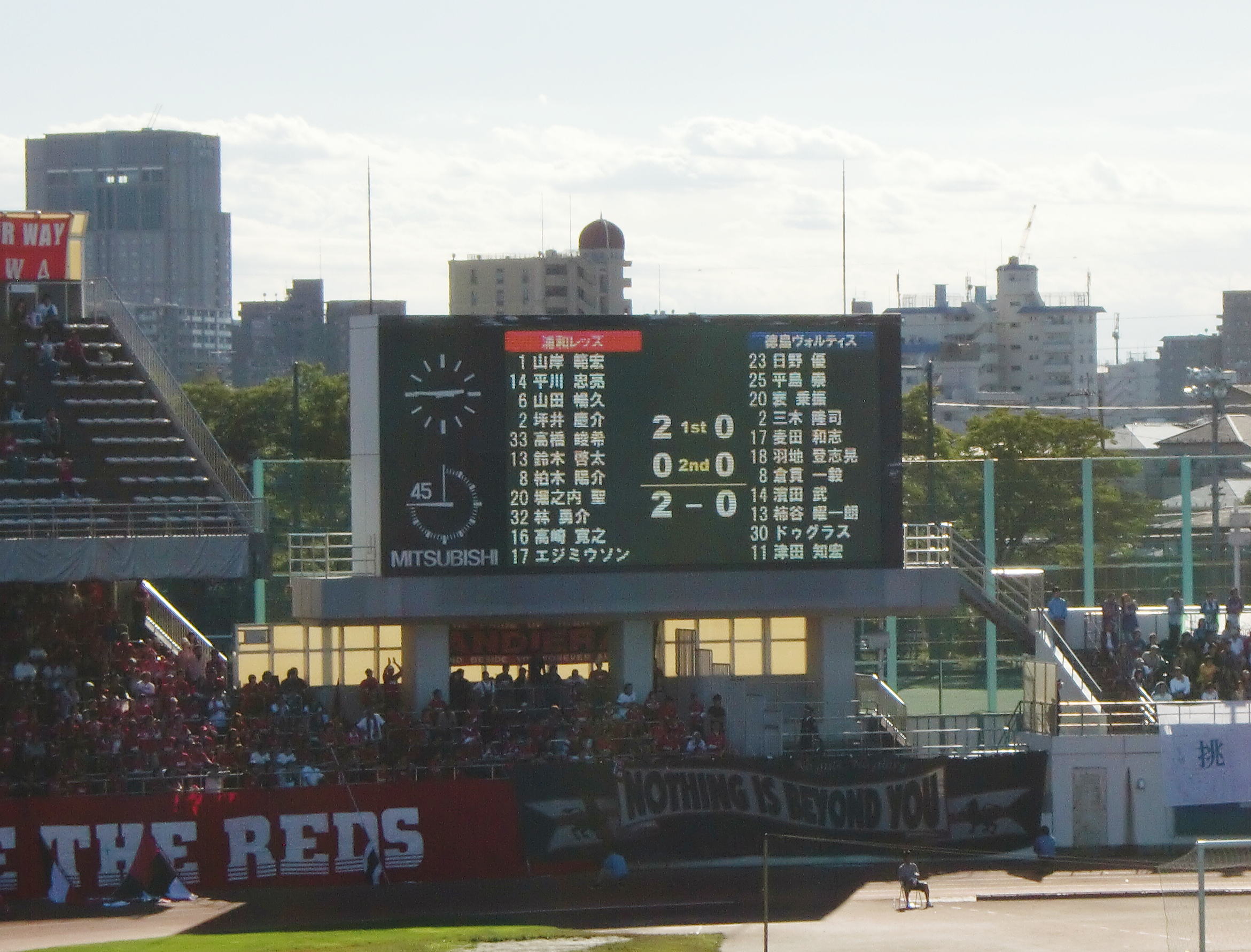 • 1993년, J리그 규격에 맞추기 위해 야간 조명 설비와 백 스탠드의 일부 좌석화를 실시하여 10,000명을 수용할 수 있게 되었다. 4월 24일에는 개장 경기로 우라와 국제 친선 축구 경기(우라와 대 맨체스터 시티)가 개최되었다. 5월 18일에는 최초의 J리그 공식 경기(제1 스테이지 제2절, 우라와 대 나고야 그램퍼스 에이트)가 개최되었다.