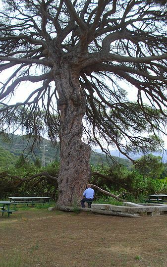 - 그리스에서는 흔하게 발견되지는 않지만,[4][17] 펠로폰네소스반도 서부 스트로필리아 지역에는 지중해와 석호 사이에 약 13km 길이에 달하는 넓은 우산소나무 숲이 존재한다.[5][18] 이 숲은 알레포소나무(''Pinus halepensis'')와 혼합되어 분포하며,[6][19] 현재는 알레포소나무가 우점종인 경우가 많다.[7][20] 또한 에게해의 스키아토스 섬 남서쪽 쿠쿠나리에스에도 석호와 바다 사이에 약 800m 길이의 우산소나무와 알레포소나무 숲이 있다.[8][21]