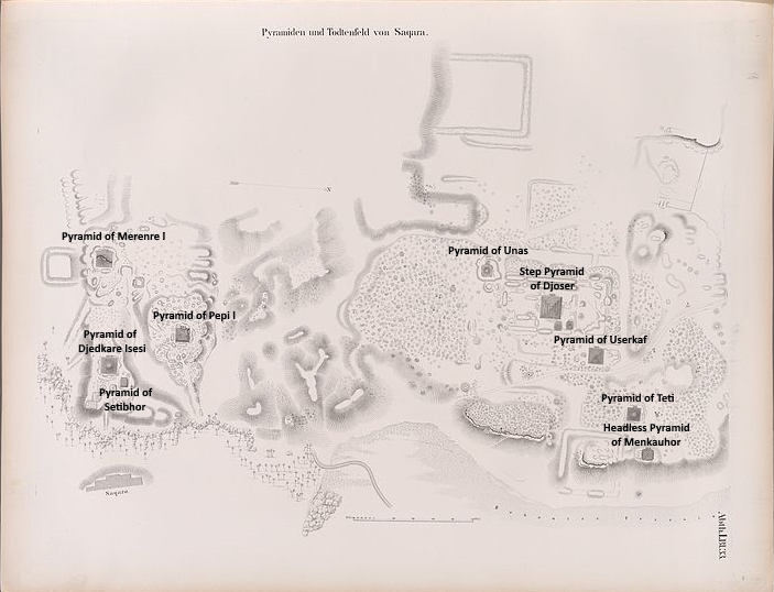 우세르카레의 피라미드 위치에 대해서는 두 가지 가설이 제시되었다. 이집트학자 바실 도브레브는 우세르카레의 피라미드가 현재 타베트 알-게쉬로 알려진 사카라 남부 지역, 즉 페피 1세의 장례 단지의 북서쪽에 위치해 있다고 제안했다. 실제로 그곳에서 제6왕조 행정 관리들의 대규모 묘지가 발견되었으며, 도브레브에 따르면 이는 인근에 왕실 피라미드가 존재함을 시사한다.[2] 천체 물리학자 줄리오 마글리는 우세르카레의 피라미드가 페피 1세와 메렌레 넴티엠사프 1세 사이 중간 지점에 위치해 있으며, 이 세 피라미드가 세켐케트, 우나스, 조세르, 우세르카프 및 테티의 피라미드가 북쪽에 형성하는 선과 평행한 선을 이룬다고 주장한다.