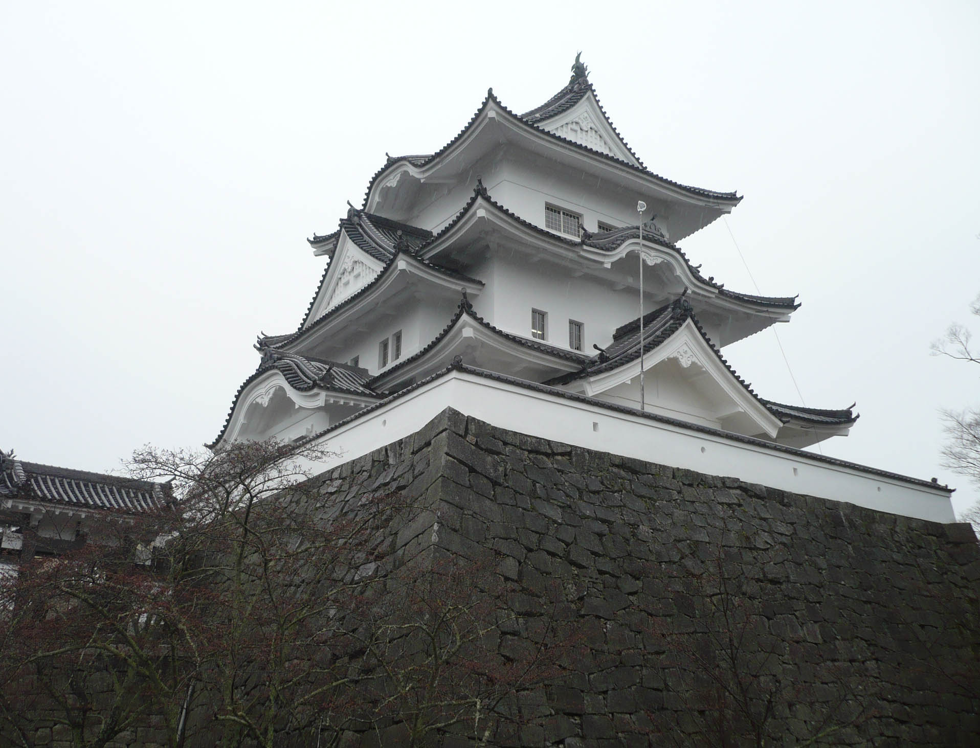 오다 노부나가의 2남 오다 노부카쓰의 가신이었던 다키가와 가쓰토시가 헤이라쿠지(平楽寺) 터에 성채를 세웠다. 1585년 쓰쓰이 사다쓰구에 의해 보수되었고, 1611년 도쿠가와 이에야스의 명을 받은 도도 다카토라가 성을 확장, 보수하였다. 하지만, 1615년 오사카 전투에서 도요토미 가문이 멸문되자 확장 공사는 중지되었다.[2]