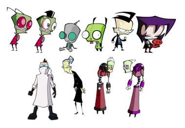 GIR|가영어는 짐의 짝꿍 로봇이다. 짐이 "미스터리 행성"(지구)으로 파견될 때 받은 SIR(표준 발송 정보 검색) 장치이다.[58] 쓰레기통에서 찾은 부품으로 급하게 만들어져 매우 엉뚱하고 예측 불가능한 행동을 한다. 평소에는 개로 위장하기 위해 개의 인형 옷을 쓰고 다닌다. 성우는 로젤릭 리키 사이먼스가 맡았으며, 일본어 더빙은 미즈타 와사비가 맡았다.