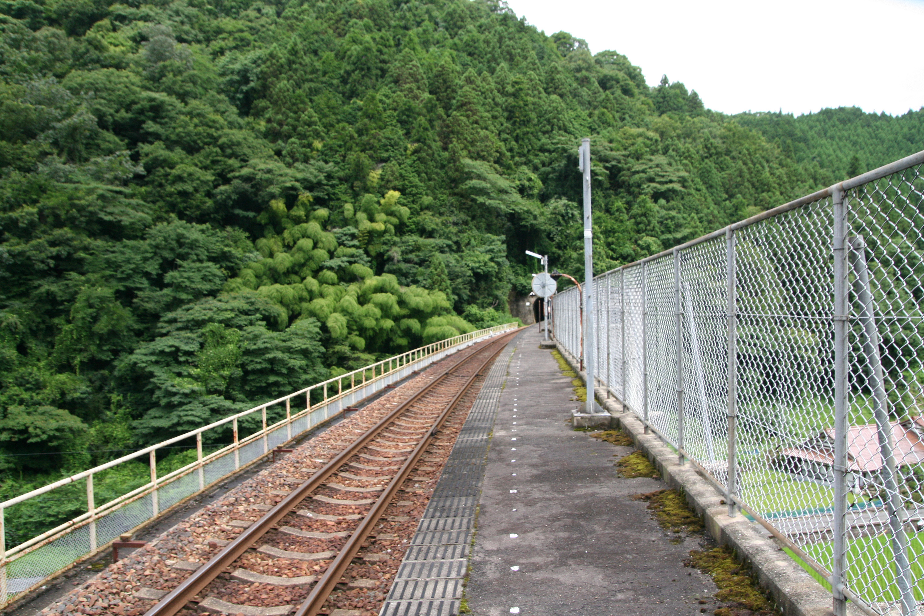 산골짜기에 민가가 드문드문 자리 잡고 있다. 산코선과 교차하는 형태로 시마네현도 292호선이 지나간다.