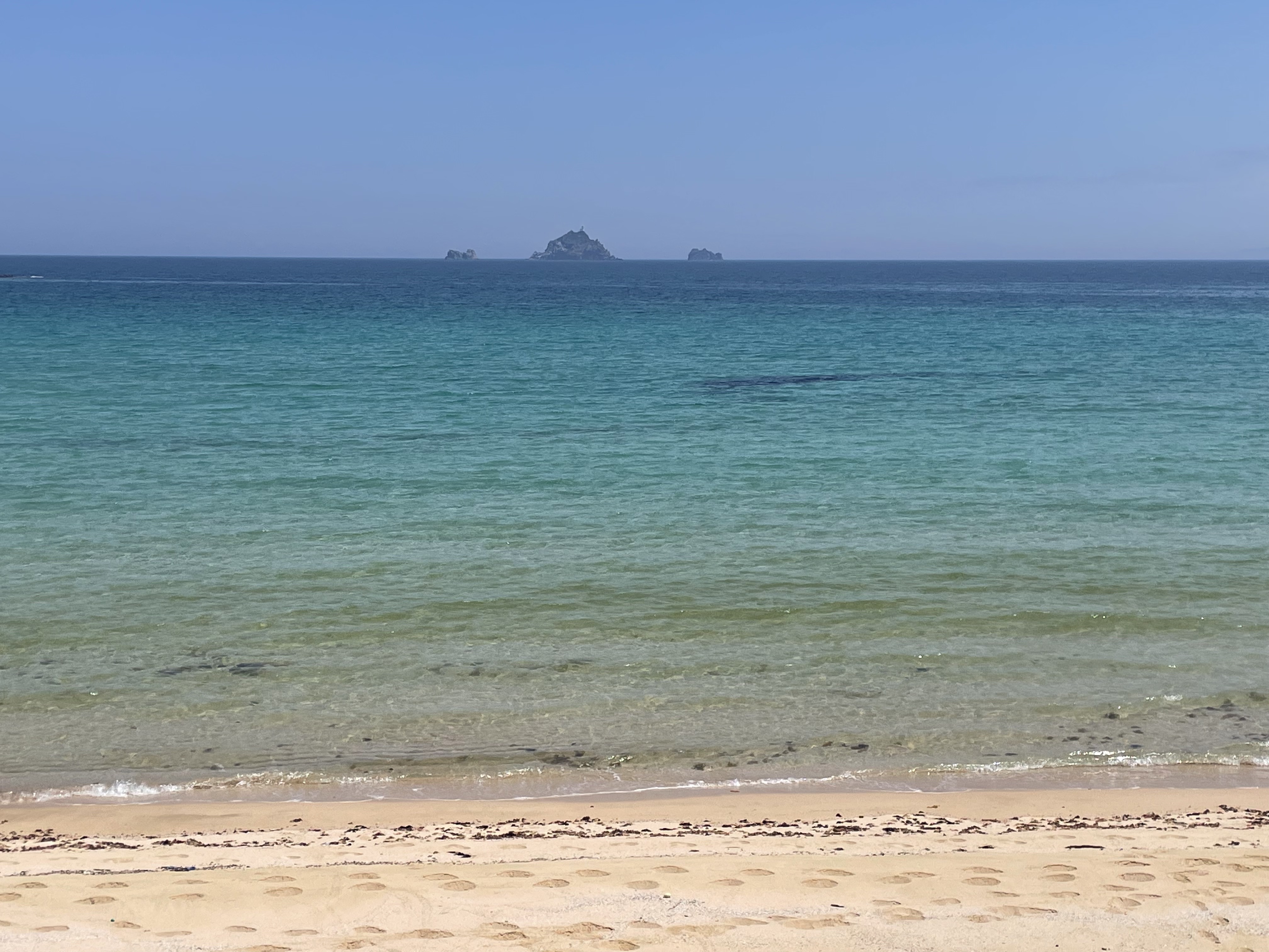 - 시오데 해수욕장 - 섬의 서남서쪽에 있으며, 테라시마 등이 보이는 위치에 있다.