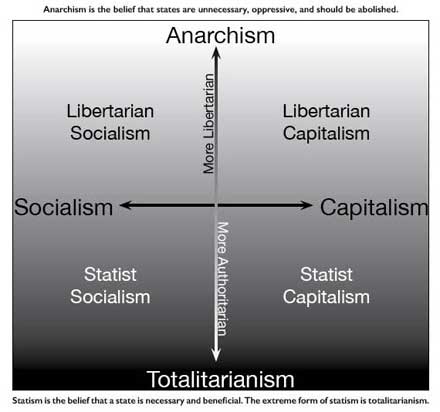 무정부 자본주의 | 국가 자체가 불필요하며, 모든 사회 기능은 자유 시장에서 해결 가능하다고 주장 |