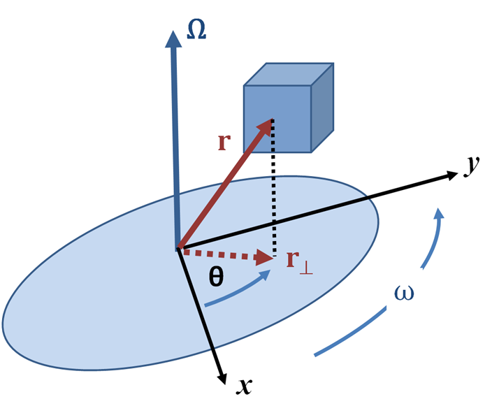 여기서 는 실린더의 z축 주위의 단위 벡터 의 각속도이다.