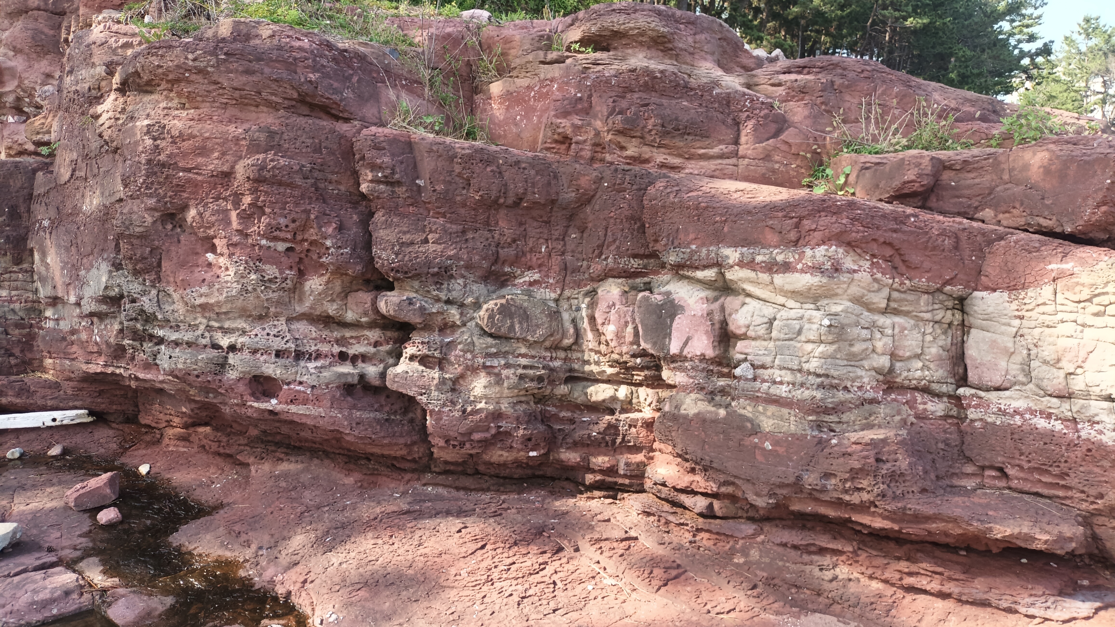경정리 백악기 퇴적암 | 축산면 경정리 | 붉은색 이암, 사암, 역암으로 구성, 다양한 퇴적 구조 발달 |