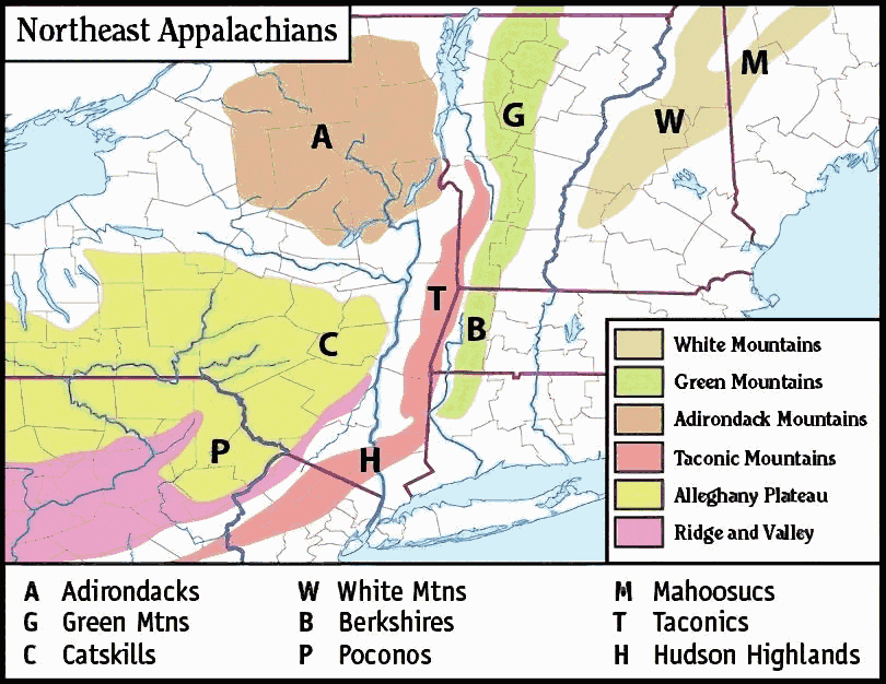 애팔래치아 산맥 지도, 그레이트 애팔래치아 계곡 강조 표시