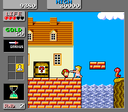 게임 시작 시 원더보이는 거의 맨몸 상태이며[61] 아이템이나 골드가 없다.[48] 시작 지점 직후에 있는 집(도시의 시장)의 문을 두드리면 게임의 목적을 듣고 검과 부활 물약을 얻어 모험을 시작한다.[7][61]