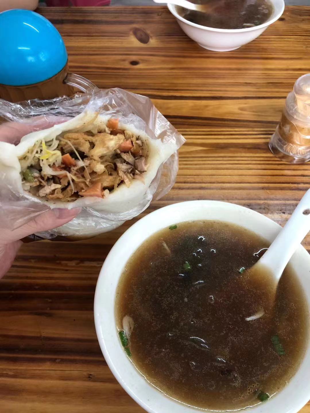 마이빙통(麦饼筒)은 밀가루에 잎새버섯과 다른 녹색 채소 즙을 섞어 만든 얇은 크레이프이다. 돼지고기, 볶음 달걀, 새우, 양파, 볶음 국수 등 다양한 재료를 크레이프 위에 올려 말아준다.[5]