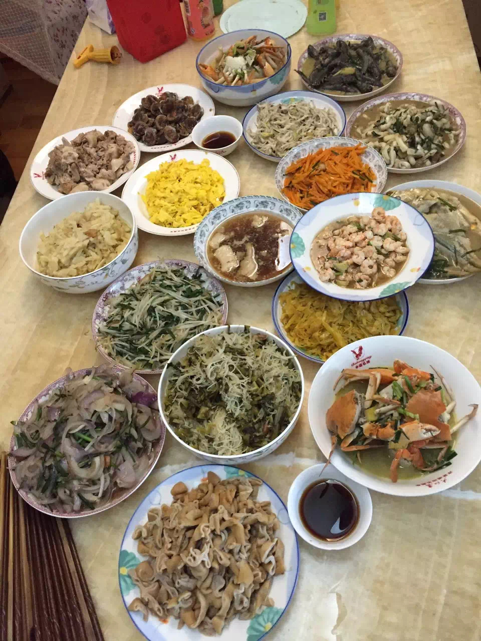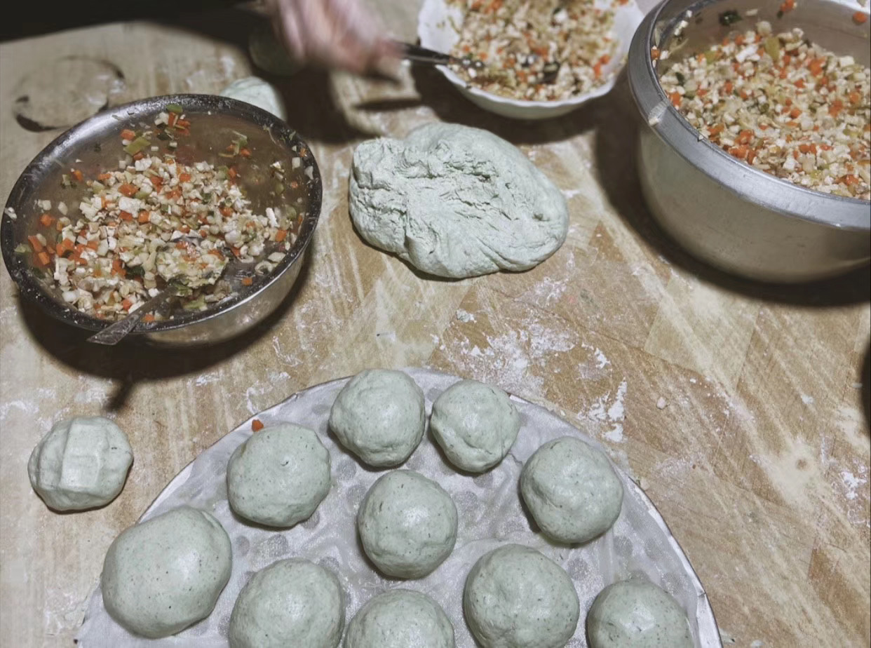 첸가오(嵌糕)는 떡(니엔가오)과 볶음 국수, 당근, 감자, 돼지고기, 두부 등 다양한 재료를 넣어 만든 음식이다. 첸가오는 큰 만두 모양이며, 모든 재료가 그 안에 채워져 있다.[5]