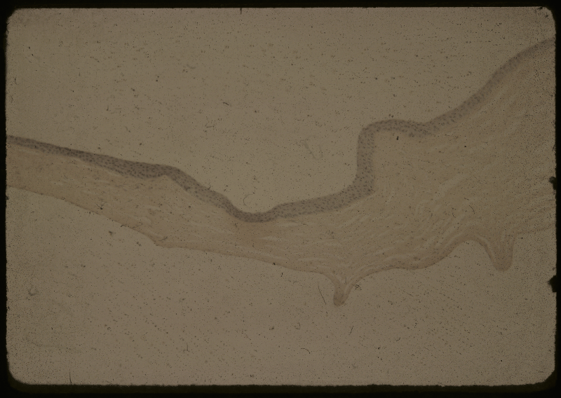 진단 후 6년이 지난 원추각막 각막 표본: 얇은 기질, 주름진 후면