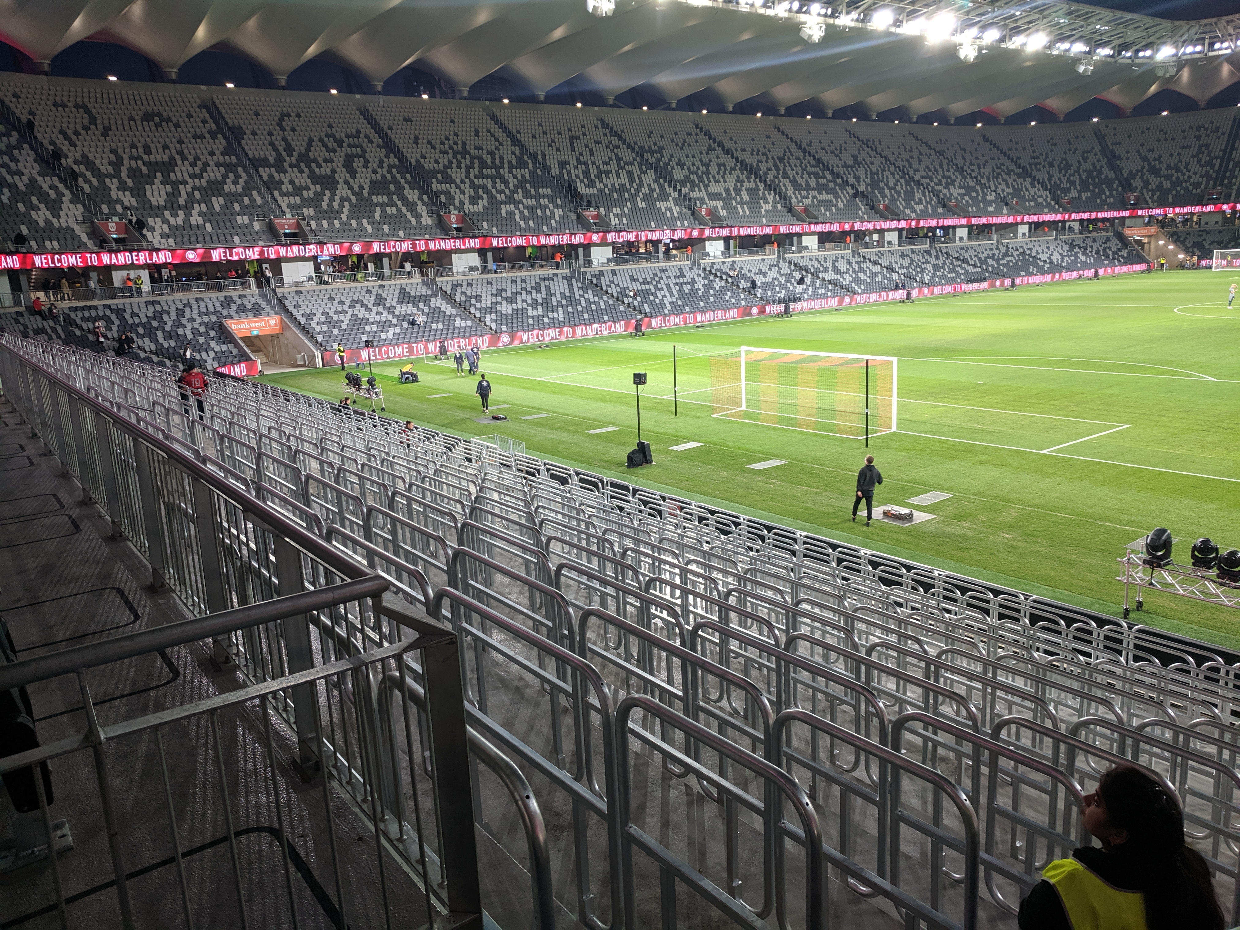 새 경기장에서 열린 첫 번째 축구 경기는 2019년 7월 20일 웨스턴 시드니 원더러스 FC가 영국의 리즈 유나이티드 FC를 초청하여 치른 친선 경기였다.[32] 이 경기에는 24,419명이 참석했으며, 리즈 유나이티드가 2-1로 승리했다.[33][34] 리즈의 마테우시 보구시가 경기장 첫 골을 넣었고, 원더러스의 콰메 예보아가 홈팀 첫 골을 기록했으며, 파블로 에르난데스가 경기 종료 직전 결승골을 넣었다. 이 경기는 양 팀 서포터들이 90분 내내 응원하며 좋은 분위기를 만들었다는 평가를 받았다.[35]