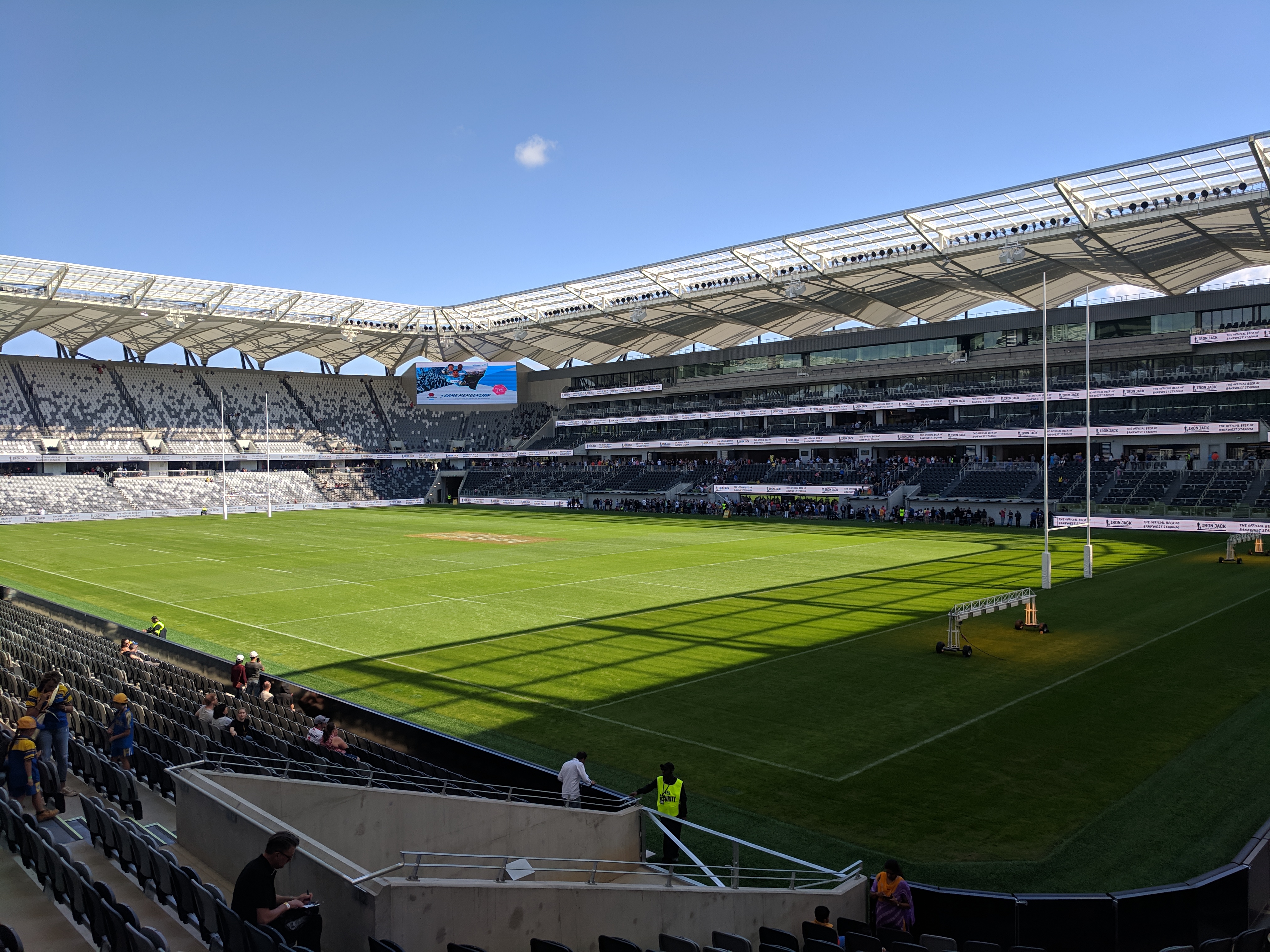 - 개장 경기: 2019년 4월 22일 부활절 월요일, 파라마타 이엘스와 웨스트 타이거스의 럭비 리그 경기로 공식 개장했다. 파라마타 이엘스의 미첼 모세스는 이 경기장에서 NRL 역사상 첫 번째 트라이, 컨버전, 필드 골을 모두 기록했으며, 팀은 매진된 관중 앞에서 51-6으로 승리했다.[25] 경기장에서 기록된 첫 번째 공식 트라이는 개장 경기에 앞서 열린 캔터베리 컵 NSW 경기에서 웬트워스빌 매그파이스 소속의 베번 프렌치가 웨스턴 서버브스를 상대로 기록했다.[26][27]