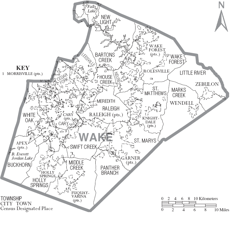 한편, 1881년에는 더럼 카운티가 신설되면서 웨이크군의 일부 지역이 더럼 카운티에 속하게 되었다.