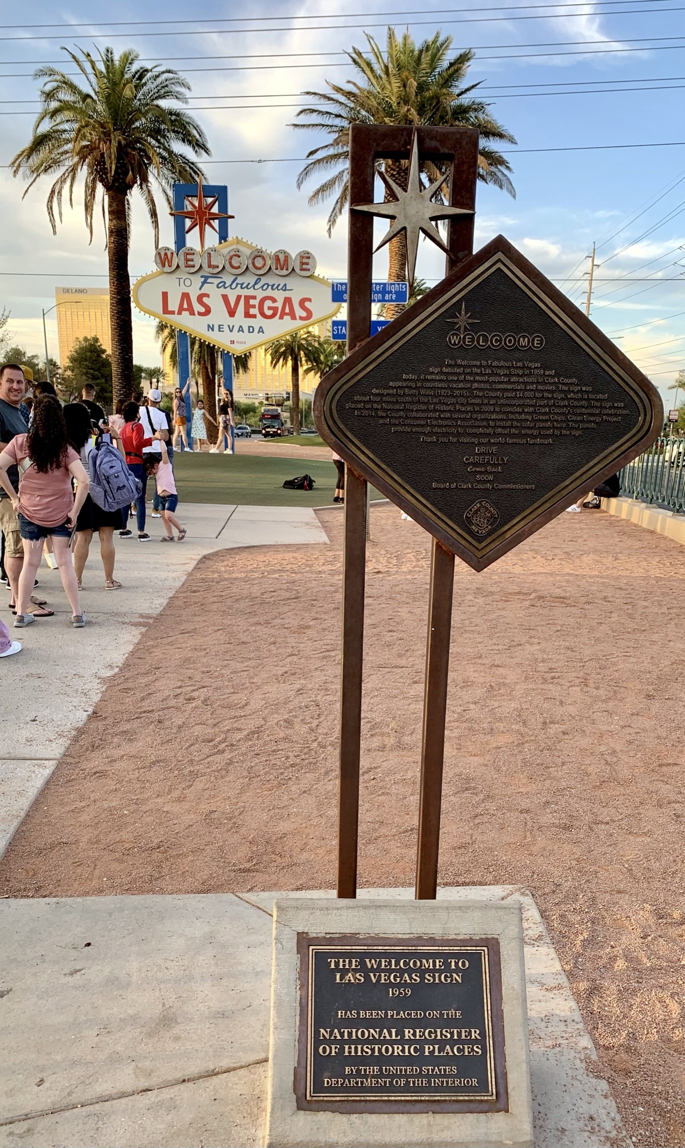 2008년 말, 클라크 카운티 직원들은 표지판을 국가 사적지에 등재하기 위해 노력했고,[5] 네바다 주 역사 보존 사무소가 공식적으로 이를 추천했으며, 국립 공원 관리청은 2009년 5월 1일에 이 지정을 승인했다.[1]