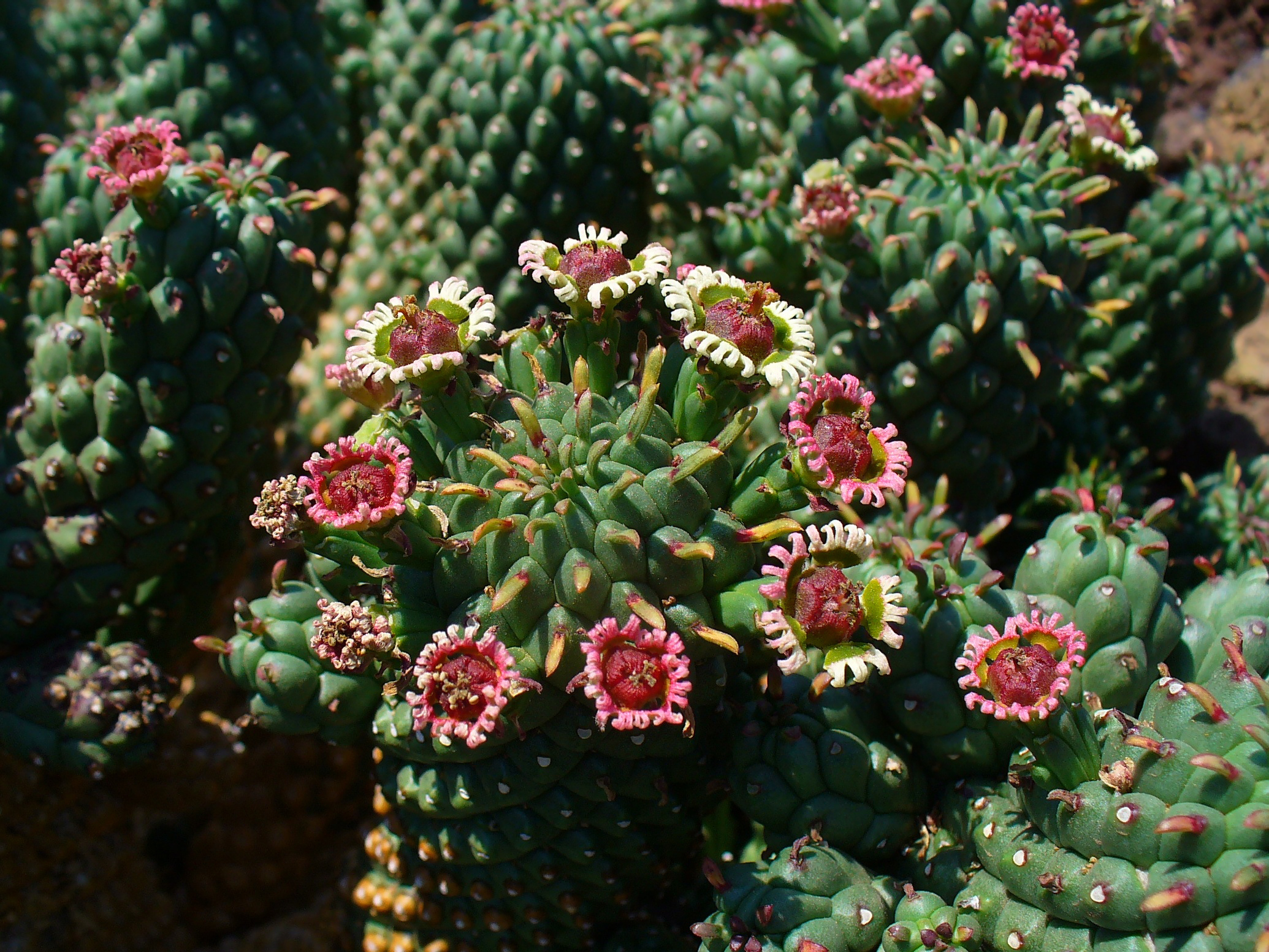 대극과(Euphorbiaceae) | 배상꽃차례(cyathia) | 한 개의 심피 꽃과 컵 모양 구조 또는 포엽 안에 들어 있는 몇 개에서 여러 개의 단일 수술 수꽃으로 구성된다.[20] 포엽은 종종 밀선(nectar)과 덜 흔하게 꽃잎 모양 구조로 가장자리가 이루어져 있다.[21] 중심 cyathia는 모두 수꽃으로 구성될 수 있다.[22] |
