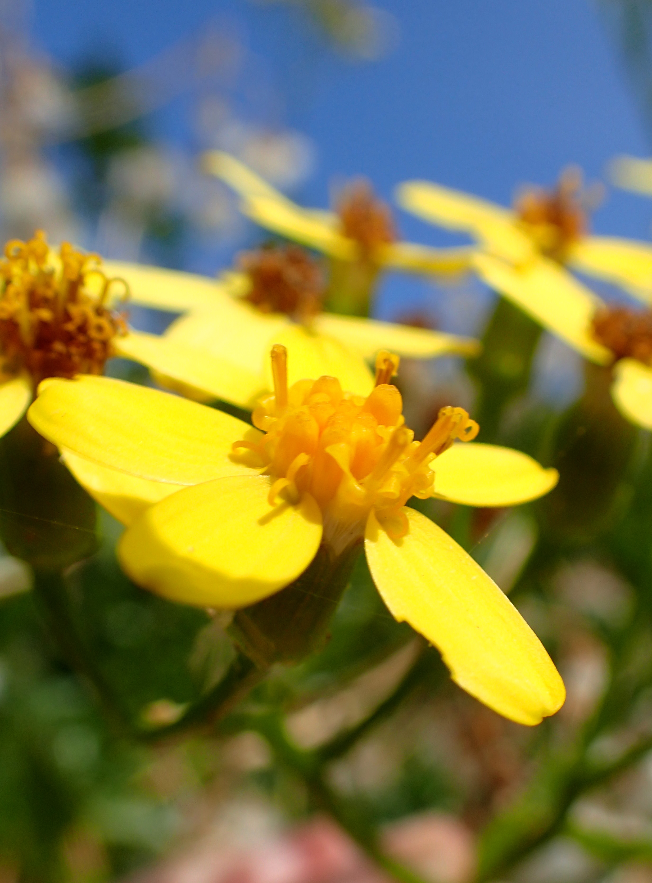국화과(Asteraceae) | 카피툴라(capitula) (단수형 capitulum) 또는 꽃 머리 | 다양한 종류의 꽃이 모여있다.[13] 개별 꽃은 작은꽃(florets)이라고 불린다.[6] 일반적으로 카피툴룸은 수분 매개자를 유인하기 위해 특화된 방사상 꽃을 가지고 있으며, 이는 성적 생식을 담당하는 원반 꽃을 둘러싸고 있다.[14] 과 내에서 꽃덮이 대칭은 다양할 수 있다. |
