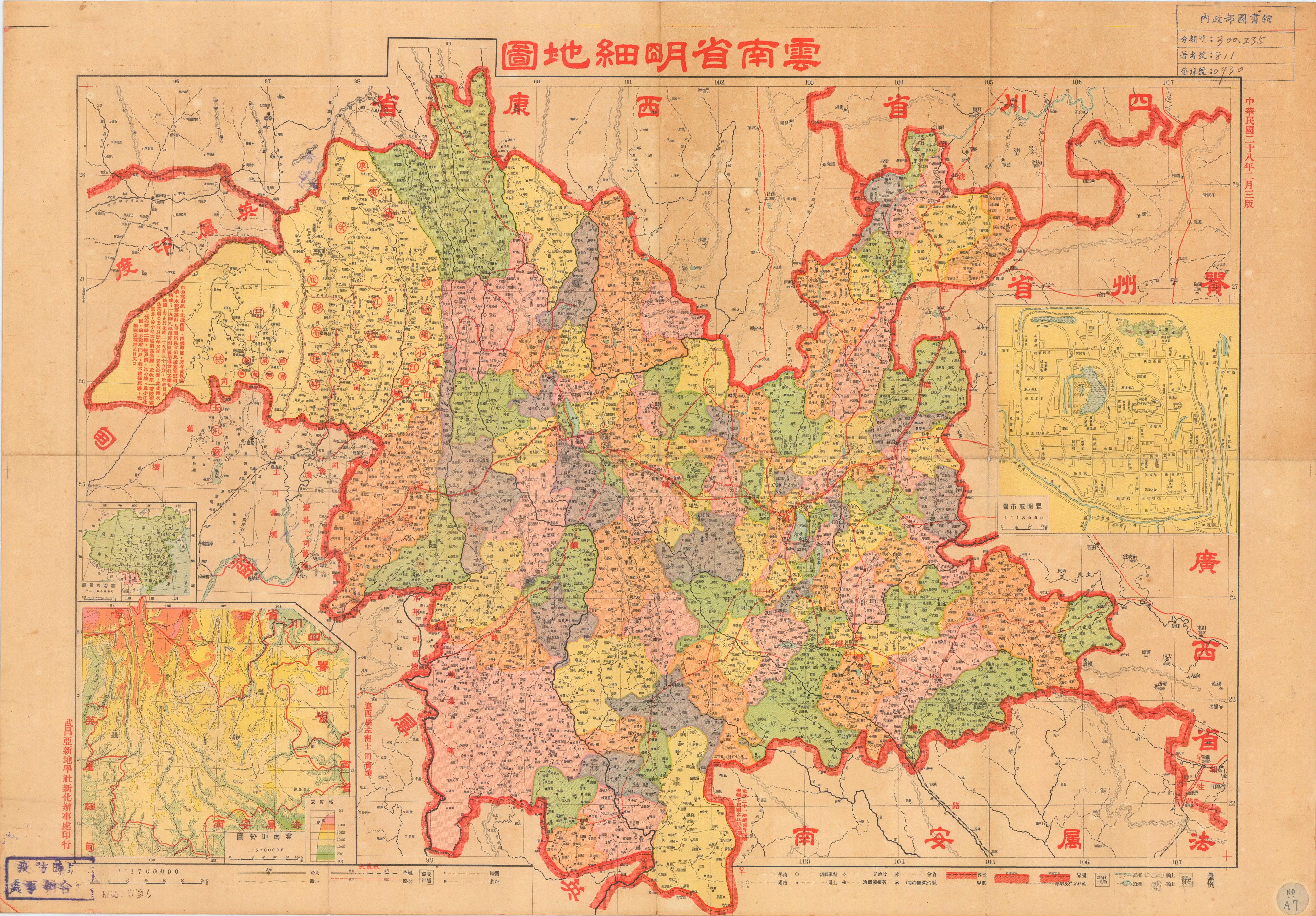 1935년(민국 24년) 3월까지는 쿤밍 현이, 그 이후에는 쿤밍 시가 성도였다.