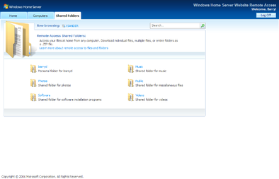 이 시스템은 SSL로 보호되는 웹 브라우저 기반 인터페이스를 통해 인터넷에서 공유 파일 저장소에 접근할 수 있도록 한다.[23] 출시 버전에서는 무료 윈도우 라이브에서 제공하는 URL을 통해 웹 인터페이스에 접근할 수 있으며, 이는 동적 DNS를 이용한다. 웹 인터페이스를 통해 콘텐츠 저장소에서 파일을 올리거나 내려받을 수 있다.[17] 다만, 한 번에 올릴 수 있는 파일 묶음의 크기는 2GB로 제한된다.[24]