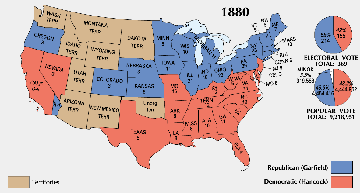 핸콕은 뉴욕에 주둔하는 동안에도 정치적 야망을 놓지 않았다. 그는 1876년 민주당 전당대회에서 일부 표를 얻었으나, 뉴욕주 지사 새뮤얼 틸던이 2차 투표에서 압도적인 표차로 승리하면서 그는 유력한 후보가 되지 못했다.[73] 이 선거에서는 공화당 후보인 러더퍼드 B. 헤이스가 승리했다. 1876년 선거 분쟁과 1877년 재건 시대의 종료는 많은 관찰자들에게 1880년 선거가 민주당에게 수십 년 만에 최고의 승리 기회를 제공할 것이라고 확신시켰고,[74][159] 핸콕은 1880년 대선을 목표로 다시 집중했다.