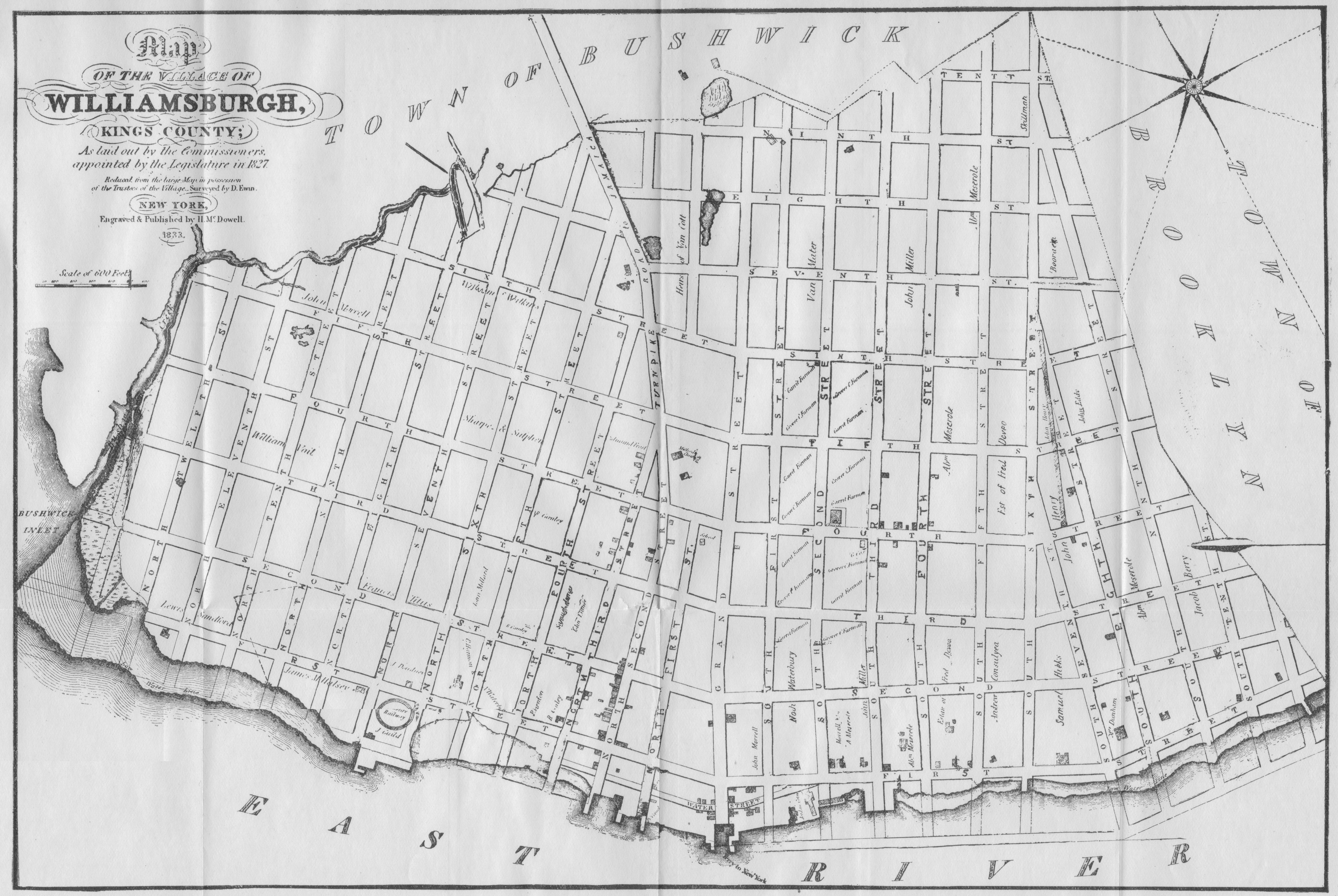 윌리엄스버그는 1827년 4월 14일 부시윅 타운 내의 '''윌리엄스버그 마을'''로 법인화되었다.[21] 2년 만에 소방서, 우체국, 인구 1,000명이 넘는 마을이 되었다.