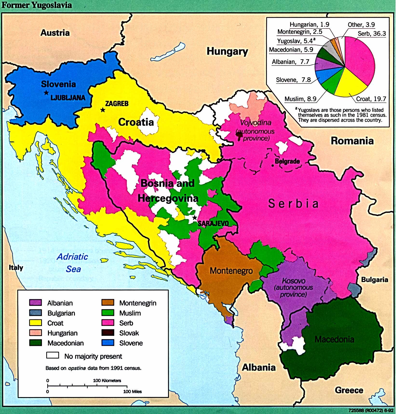 1991년 유고슬라비아의 구성 공화국이었던 슬로베니아, 크로아티아, 북마케도니아, 보스니아 헤르체고비나가 차례로 분리 독립했다.[11] 슬로베니아와 크로아티아는 1991년 6월 25일에 독립을 선포했고, 10일 전쟁이 발발했지만, 브리우니 협정으로 슬로베니아와 크로아티아는 독립에 대한 3개월 유예 기간을 갖게 되었다.[68] 피터 캐링턴과 유럽 공동체 회원들과의 협상은 실패했고, 밀로셰비치는 세르비아인들을 4개 공화국으로 나눌 것이라며 이 계획에 동의하기를 거부했다.[68]