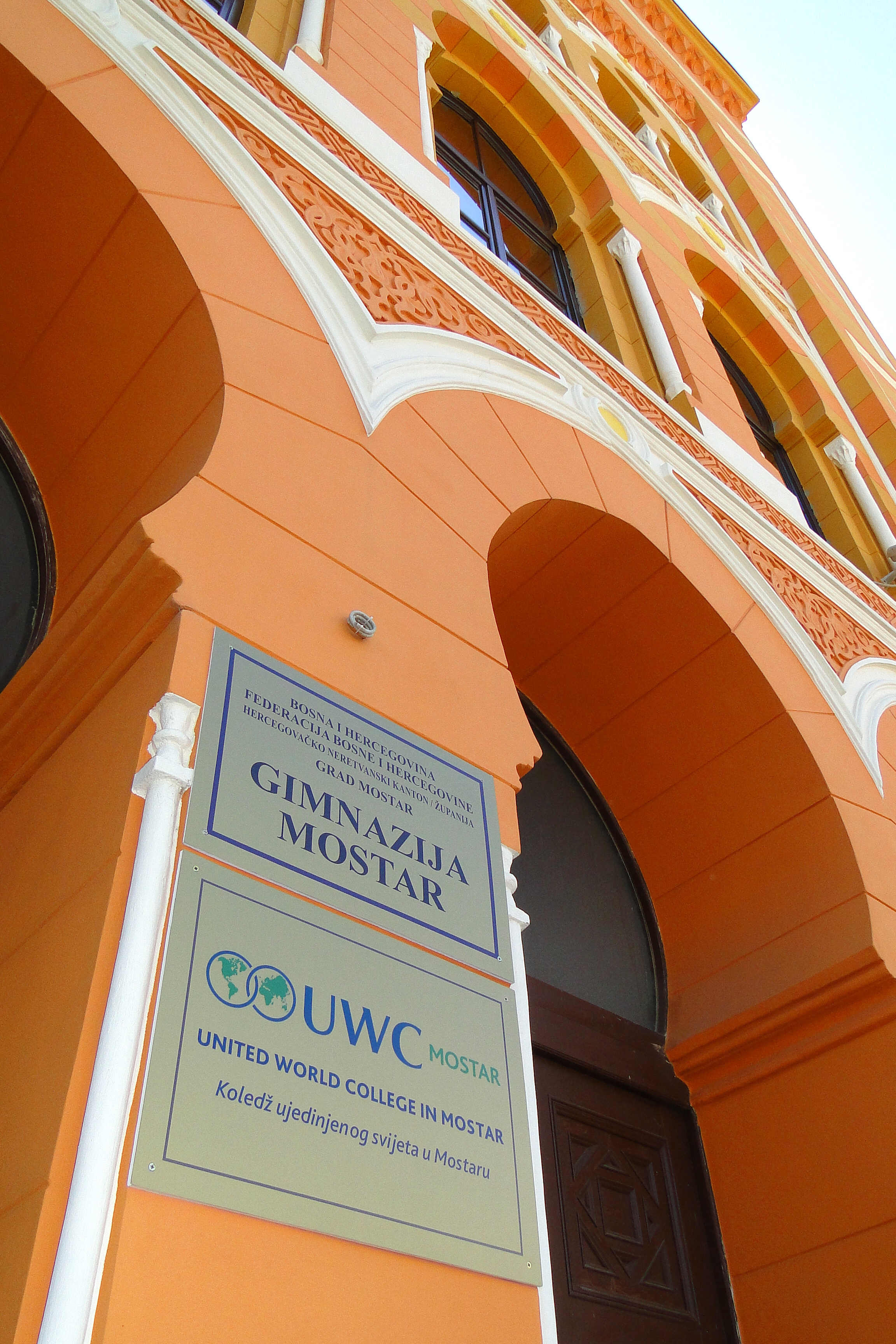 UWC 모스타르는 모스타르 시내 중심에 있으며, 165-200명의 학생이 다닌다. 이 대학은 모스타르 김나지움(약 650명의 학생)과 건물을 공유하고 있다. 전쟁 전, 1898년에서 1902년 사이 보스니아 헤르체고비나 (오스트리아-헝가리 지배) 시대에 지어진 이 학교는 구 김나지움이라고도 알려져 있었으며, 구 유고슬라비아에서 가장 훌륭한 학교 중 하나로 명성이 높았다.[6]