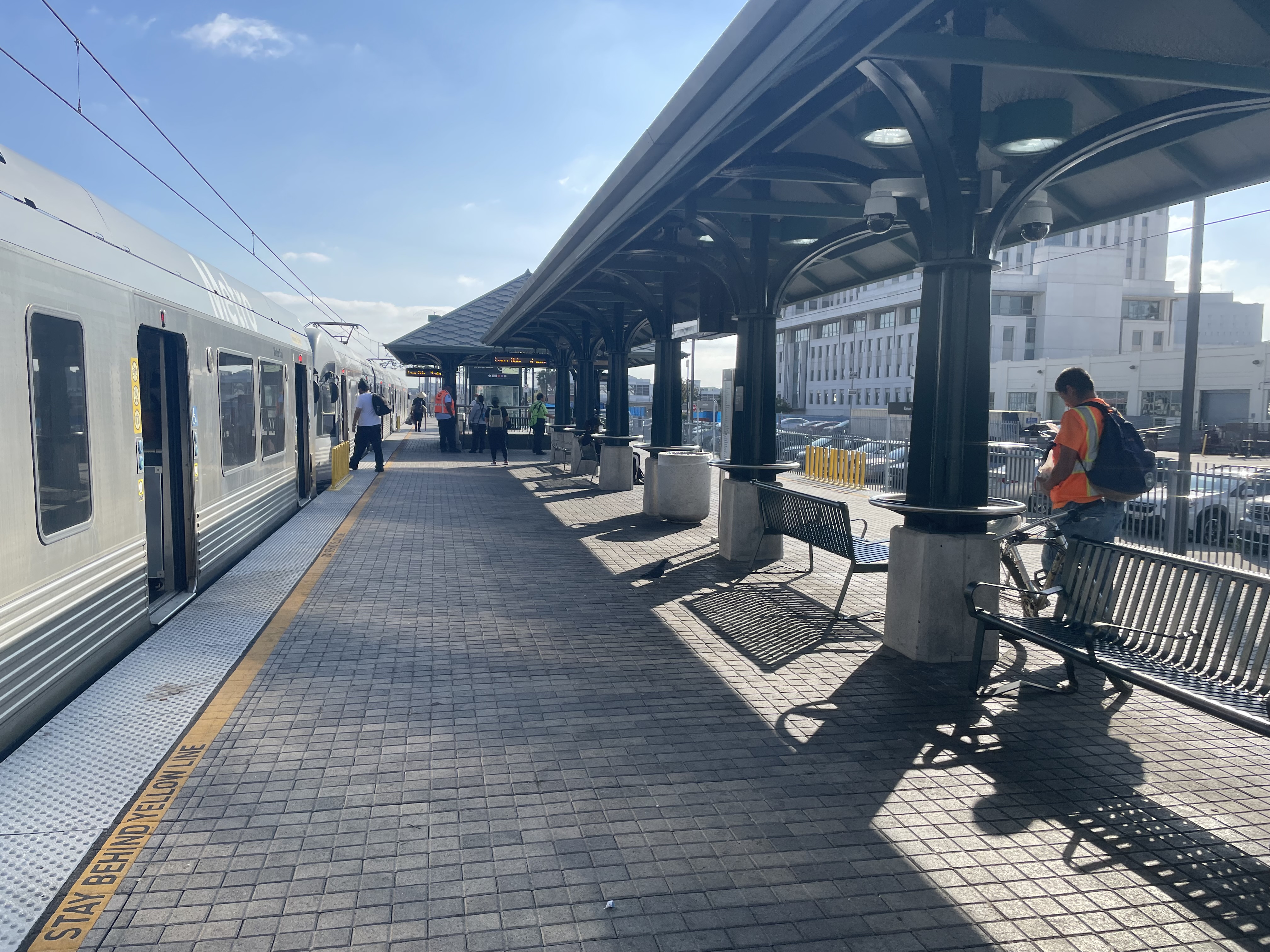 경전철 서비스는 2003년 7월 26일에 유니언 역에 도착했으며, 메트로의 골드 라인이 1번과 2번 선로에서 파사데나까지 운행을 시작했다. 이 노선은 2009년 11월 골드 라인 이스트사이드 익스텐션의 개통과 함께 US 101을 넘어 남쪽으로 확장되었다.