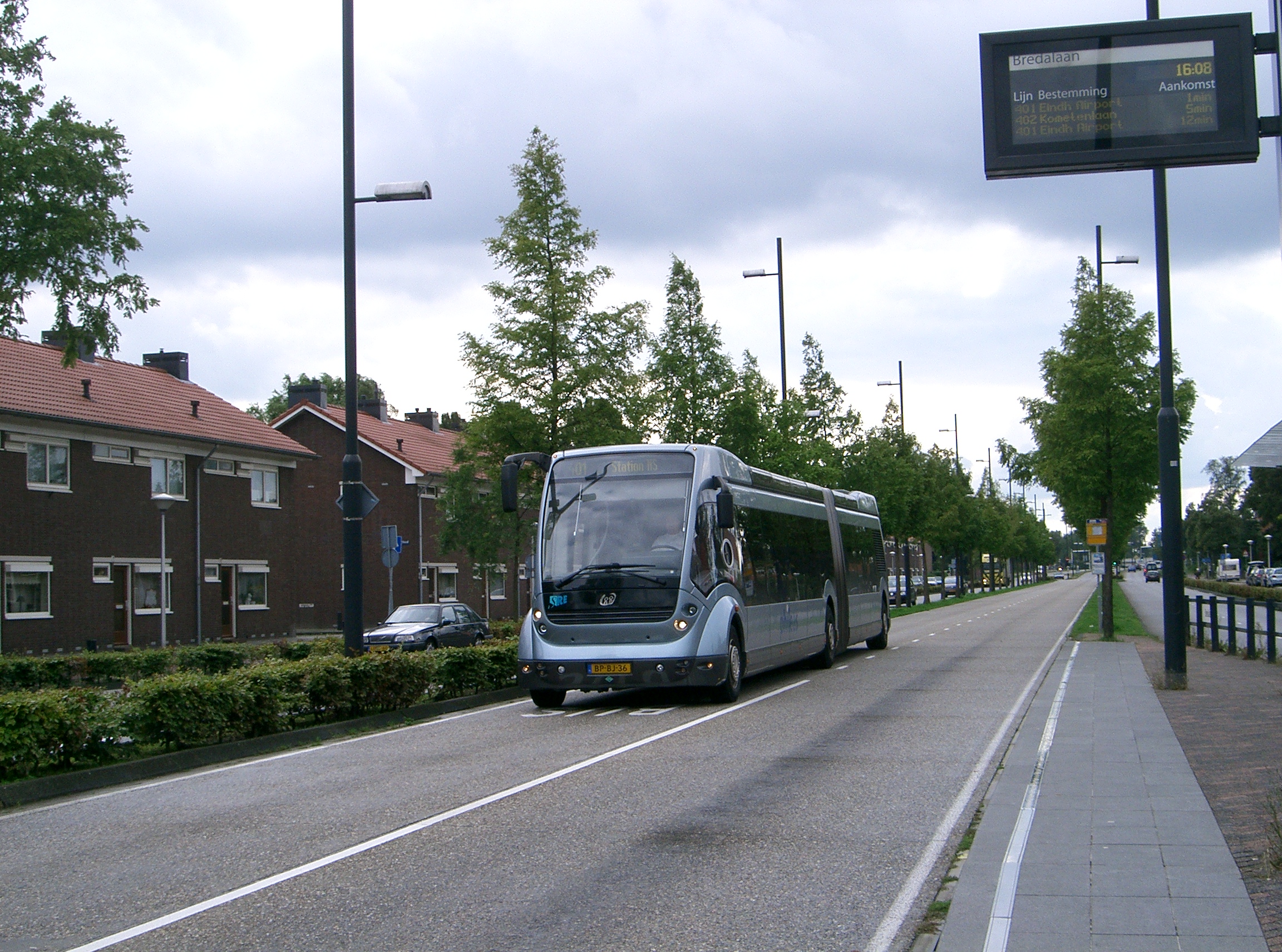 도로에 매설된 센서나 자석을 이용하는 비접촉 유도 방식도 있다.[15][16] 네덜란드 아인트호벤에서는 필리어스(Phileas) 차량이 두 개 노선에서 운행된 바 있다. 아인트호벤역-아인트호벤 공항 노선(9km)과 아인트호벤역-벨트호벤 노선(6km)은 대부분 콘크리트 버스 전용차로로 구성되었다.[18] 하지만 아인트호벤 지역 당국은 자기 유도 시스템 사용을 중단했고, 2014년에는 제조사 APTS가 파산했다.