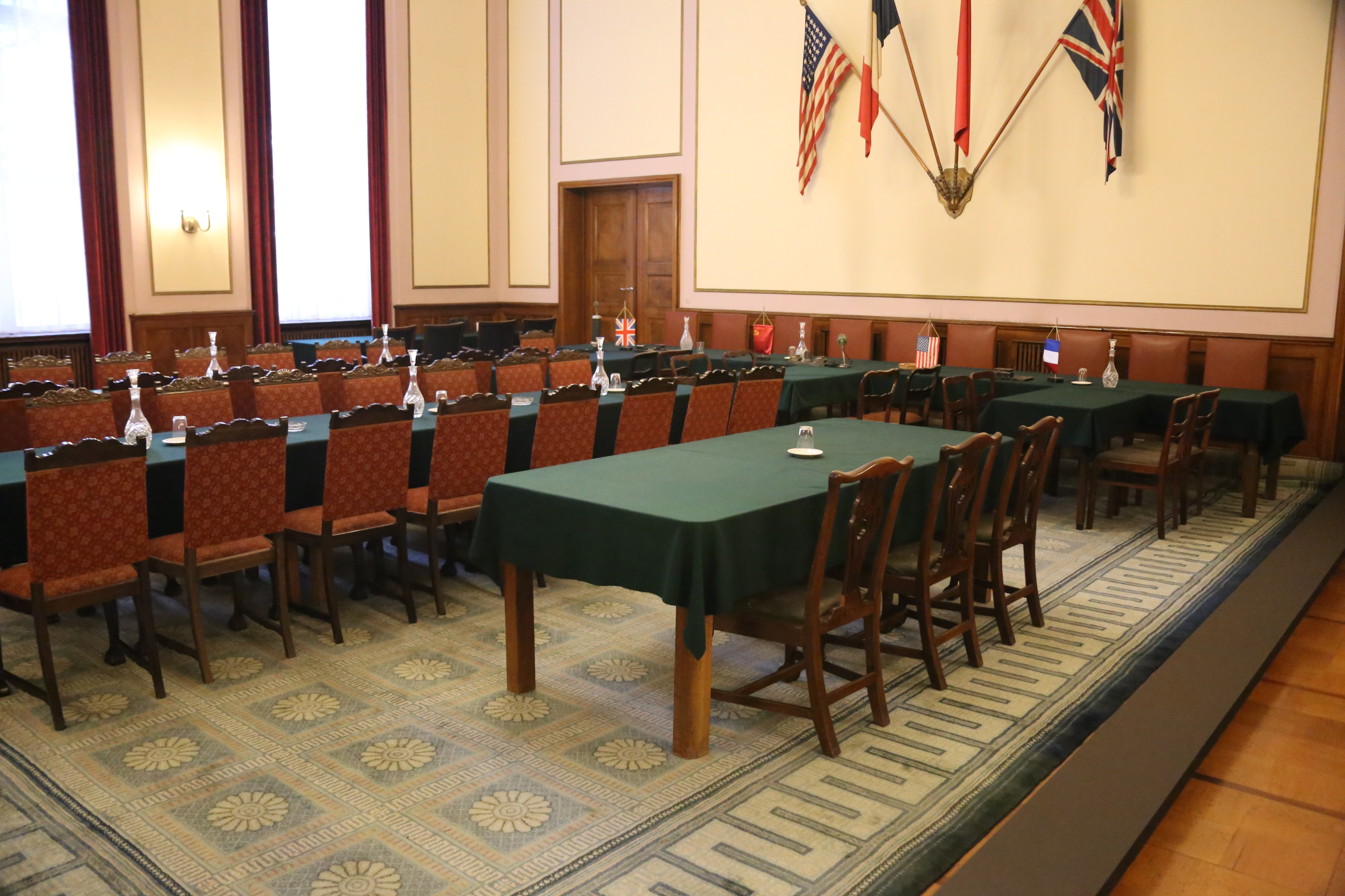 그러나 연합국 측은 제1차 세계 대전의 강화 조약이 독일 국민에게 받아들여지지 않고, "배후의 칼날" 전설을 낳아 나치당의 등장을 초래한 것을 반복하는 것을 우려했다. 이 때문에 연합국은 전장에서의 항복 문서만으로는 부족하고, 비준 문서가 필요하다고 생각했다. 이 조인을 수행할 인물은, 삼군의 최고 지휘권을 가진 인물, 즉 국방군 최고 사령부 총장 카이텔 원수여야 한다고 생각되었다.[65] 소련 측은 조인식에 아이젠하워 원수의 참가를 요청했지만, 아이젠하워는 대리로서 부사령관인 영국의 아서 테더 원수를 파견했다. 또한, 다른 문헌에 따르면 스탈린으로부터 항복 문서의 문면이 사전에 합의된 것이 아니라는 항의가 있었기 때문이라고도 한다.[66]