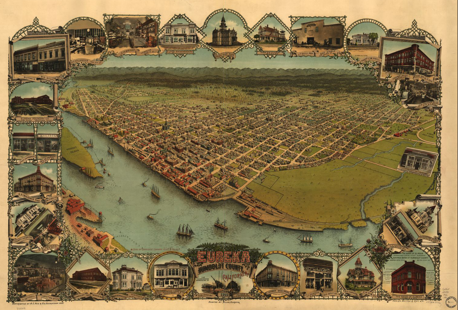 유레카는 캘리포니아주 험볼트 군에 위치한 도시로, 1850년에 설립되었다. 위요트족이 수천 년 동안 거주했던 지역에 위치하며, 캘리포니아 골드 러시 이후 목재 산업과 어업을 중심으로 성장했다. 현재는 관광, 목재, 의료 서비스가 주요 산업이며, 2010년 기준 27,191명의 인구가 거주한다. 유레카는 "유레카(Eureka, '내가 찾았다!')"라는 그리스어에서 유래된 이름을 가지고 있으며, 캘리포니아 주의 공식 모토이기도 하다. 19세기 빅토리아 양식 건축물과 올드 타운은 역사적 가치를 인정받아 미국 국립 사적지로 지정되었다.