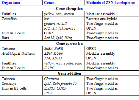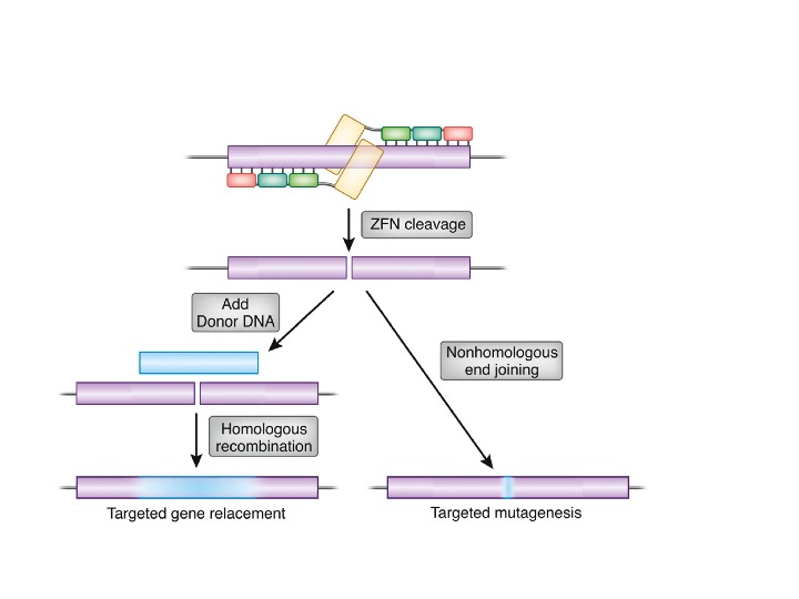ZFN, TALEN, CRISPR/Cas9는 특정 염기 서열을 표적으로 DNA를 절단하여 의도적인 DNA 개변을 가능하게 한다. DNA 절단 후에는 세포의 원래 기능에 의해 DNA 수복이 일어난다. 이때 특정 염기 서열을 단편으로 제공하면 절단 부위에 삽입하는 녹인이 가능하며, 녹인을 하지 않고 수복을 하더라도 염기 서열이 변하지 않는 한 DNA 절단이 반복되므로 변이가 발생하여 특정 유전자의 기능을 멈추는 녹아웃에도 활용된다.