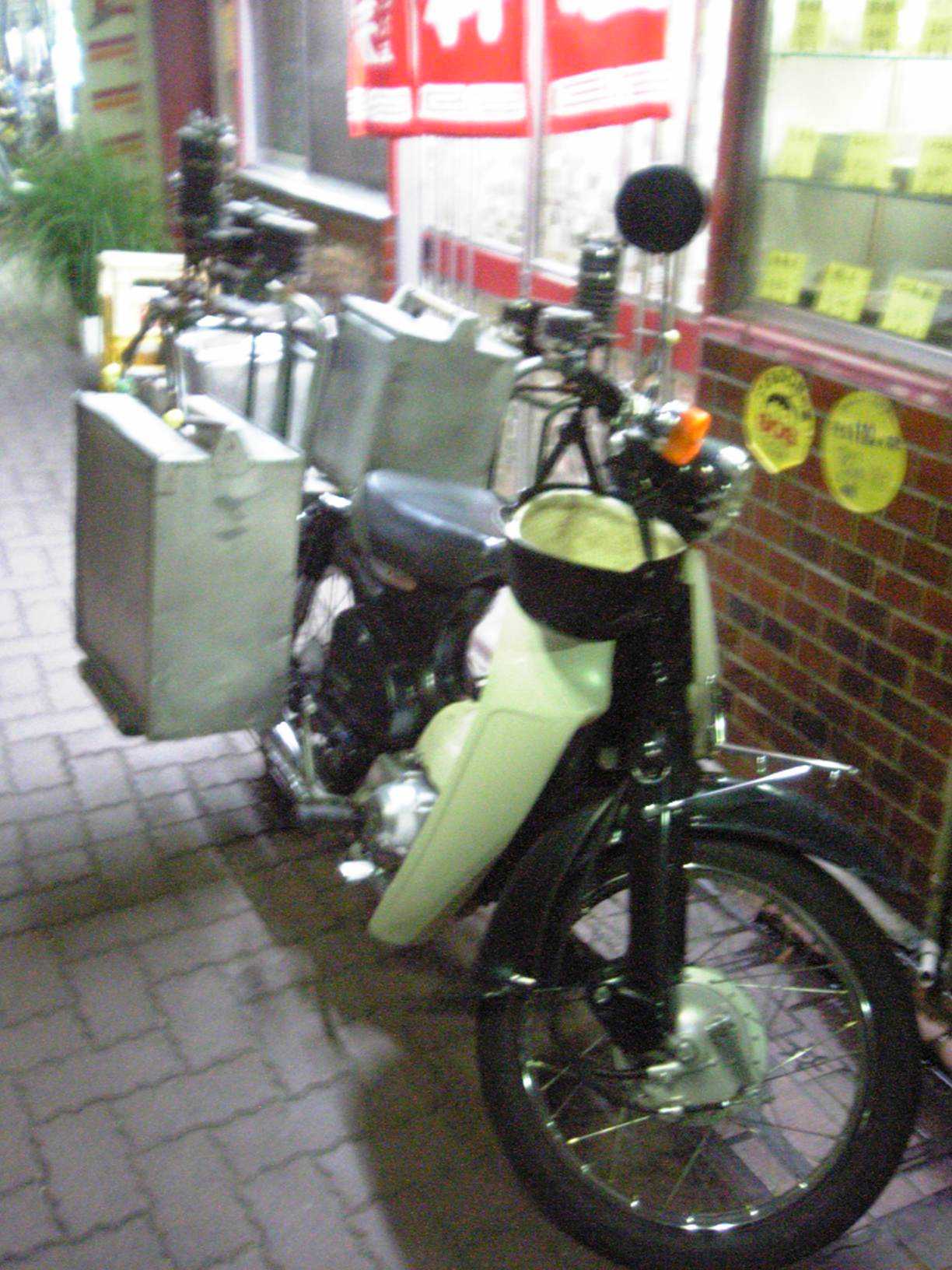 과거에는 자전거나 오토바이로 배달할 때, 한 손으로 핸들을 잡고 빈 어깨에 소바 수십 인분 세이로를 높이 쌓아 올리거나, 한 손에 오카모치를 드는 곡예 운전이 흔히 보였다. 혼다 카브(1958년 출시)의 방향 지시등 스위치가 변칙적으로 장착되어 있거나, 수동식이 아닌 자동 클러치식 변속기를 장착한 것도, 이러한 용도를 염두에 두고 처음부터 한 손 운전이 가능하도록 설계되었기 때문이다.