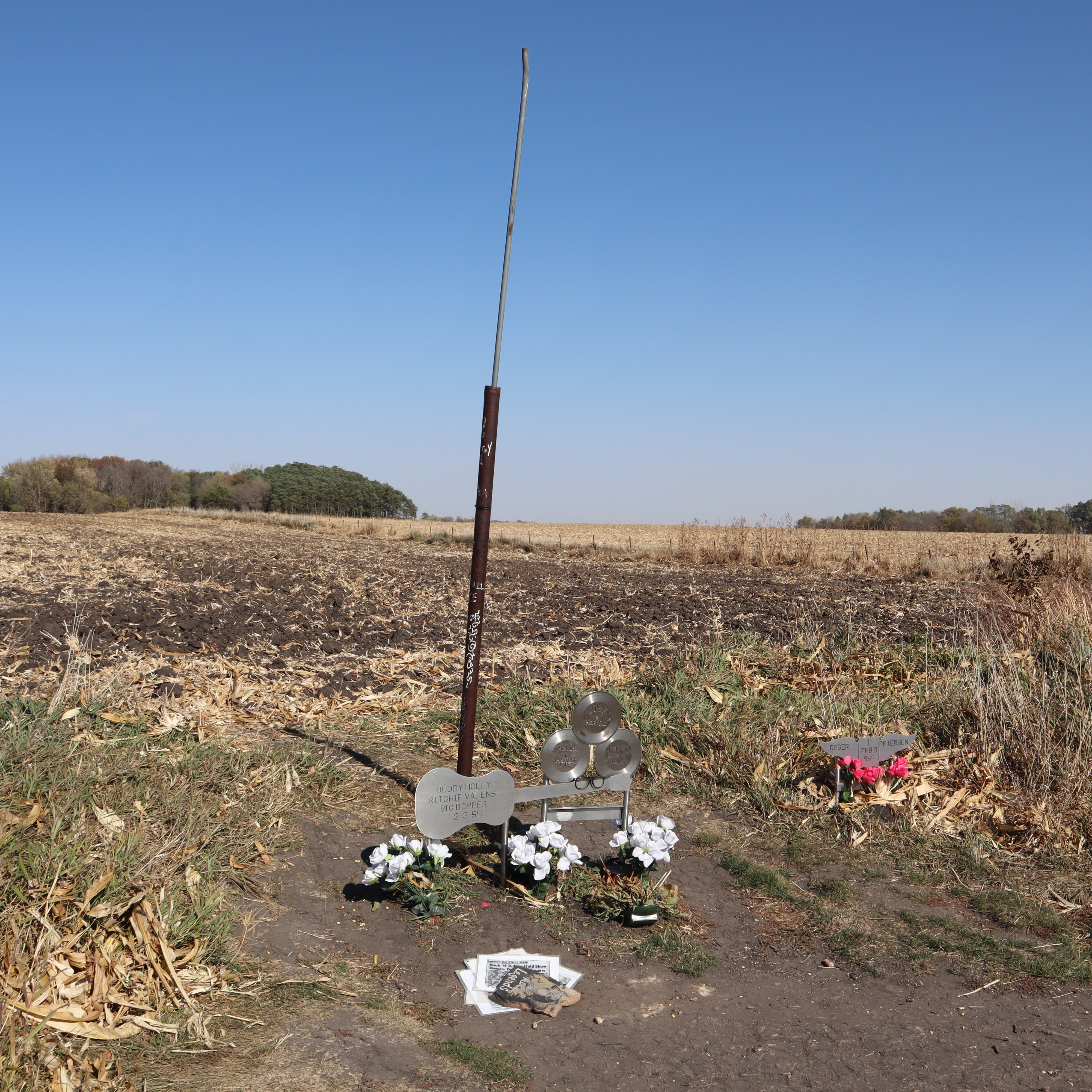 1988년 6월, 아이오와주 클리어 레이크의 서프 볼룸 밖에 높이 약 1.22m의 화강암 기념물이 세워졌다. 이 기념비에는 조종사 로저 피터슨과 세 연주자(버디 홀리, 리치 밸런스, 빅 바퍼)의 이름이 새겨져 있다. 제막식에는 피터슨의 미망인, 부모, 누이가 참석했으며, 이는 홀리, 리처드슨(빅 바퍼), 밸런스, 피터슨의 가족들이 처음으로 함께 모인 자리였다.1989년(일부 자료에서는 1988년[55]), 1950년대 음악 팬이었던 위스콘신 출신의 켄 파켓(Ken Paquette)은 사고로 사망한 세 연주자를 기리기 위해 스테인리스 스틸로 또 다른 기념비를 제작했다.[71] 이 기념비는 기타와 세 연주자의 이름이 새겨진 세 개의 음반 모양을 하고 있다. 기념비는 클리어 레이크에서 북쪽으로 약 8.05km 떨어진 315번가와 걸 애비뉴(Gull Avenue) 교차로에서 서쪽으로 약 약 0.40km 지점의 사유지에 위치해 있다. 이 교차로에는 버디 홀리가 착용했던 것과 비슷한 웨이페어러 스타일의 대형 플라즈마 컷 강철 안경 조형물이 설치되어 사고 현장으로 가는 길을 알려준다.[31] 실제 사고 지점은 이 안경 표지판이 있는 곳에서 울타리 선을 따라 약 563.88m 더 들어가야 한다.