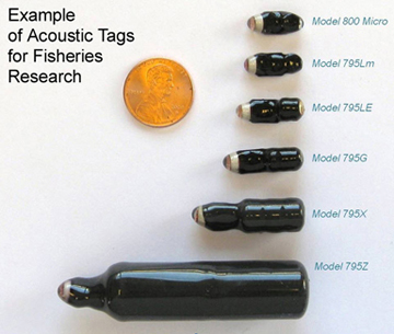 음향 태그는 염수와 담수 모두에서 작동하며, 무선 태그나 수동 유도 트랜스폰더(PIT) 태그와 달리 특정 경로로 물고기를 유도할 필요가 없다.