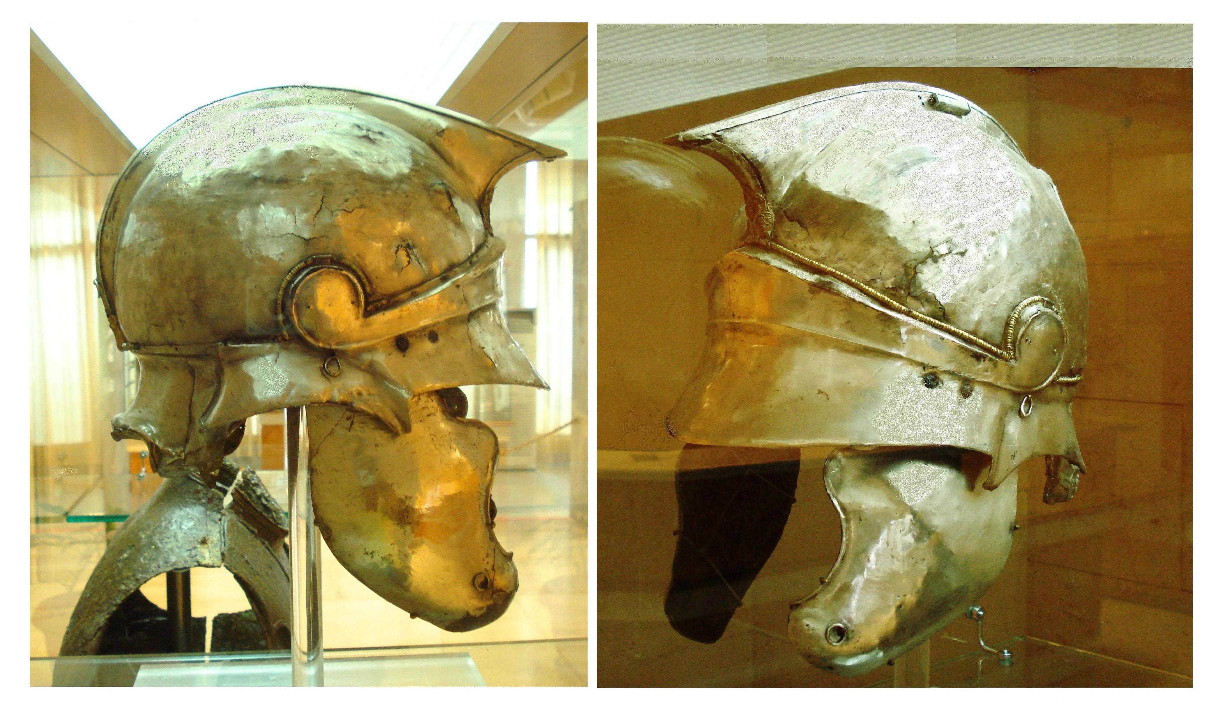 박물관의 고대 에피로스 은제 투구