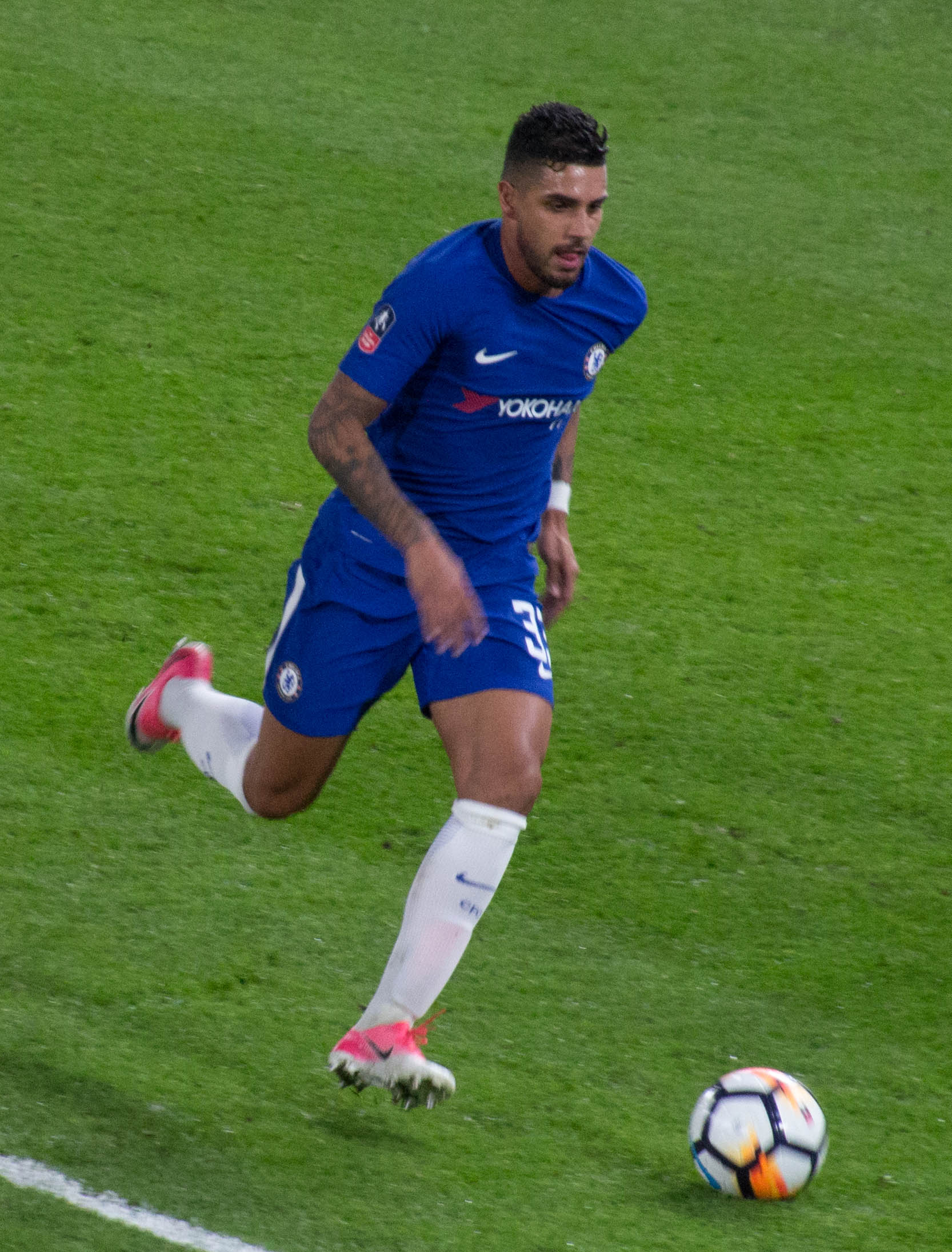 2018년 1월 30일, 에메르송은 공개되지 않은 이적료로 4년 반 계약을 맺고 잉글랜드의 첼시에 합류했다.[16] 로마에 따르면, 이적료는 2000만유로에 900만유로의 보너스였다.[17] 그는 FA컵 5라운드에서 헐 시티를 상대로 데뷔하여, 1월에 영입된 올리비에 지루의 첼시 데뷔골을 어시스트했다. 첼시는 스탬퍼드 브리지에서 4-0으로 승리했다.[18]
